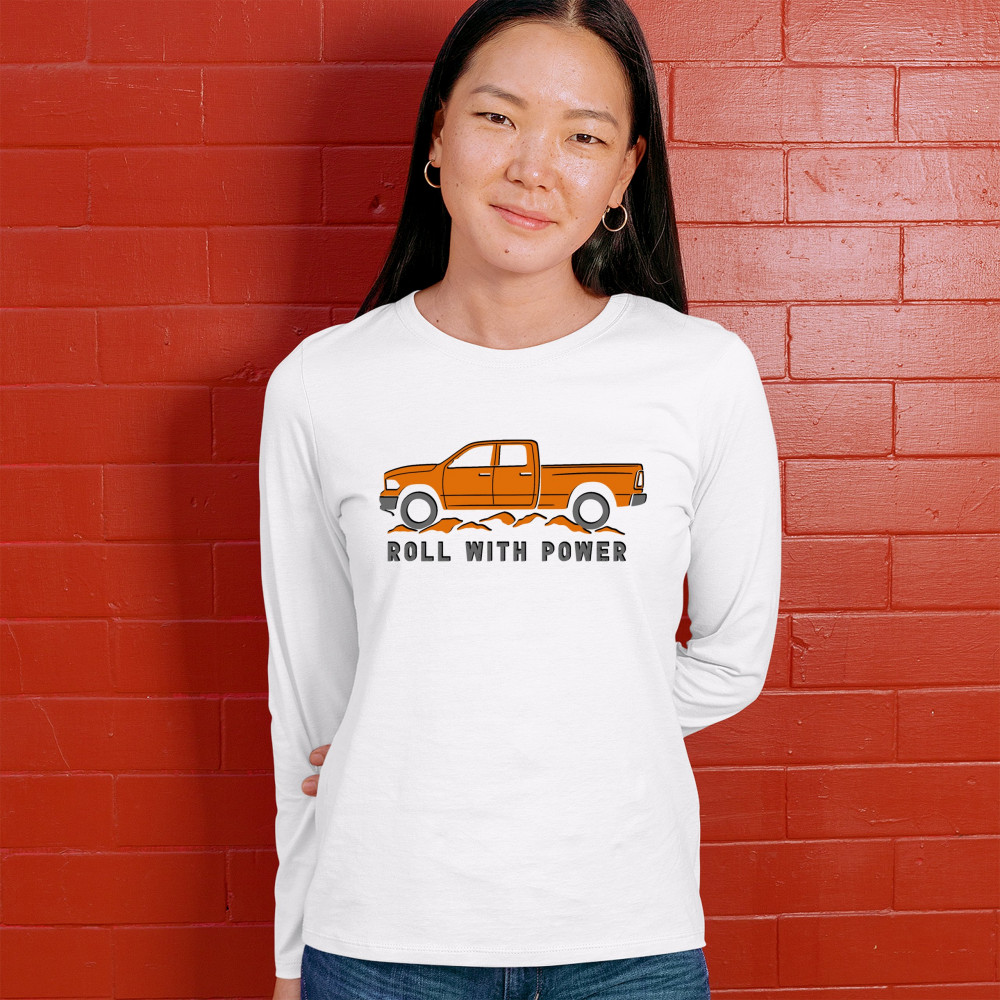 Pickup truck design for off-road fans and truck lovers. Show your road power and style with this bold “Roll With Power†truck graphic.