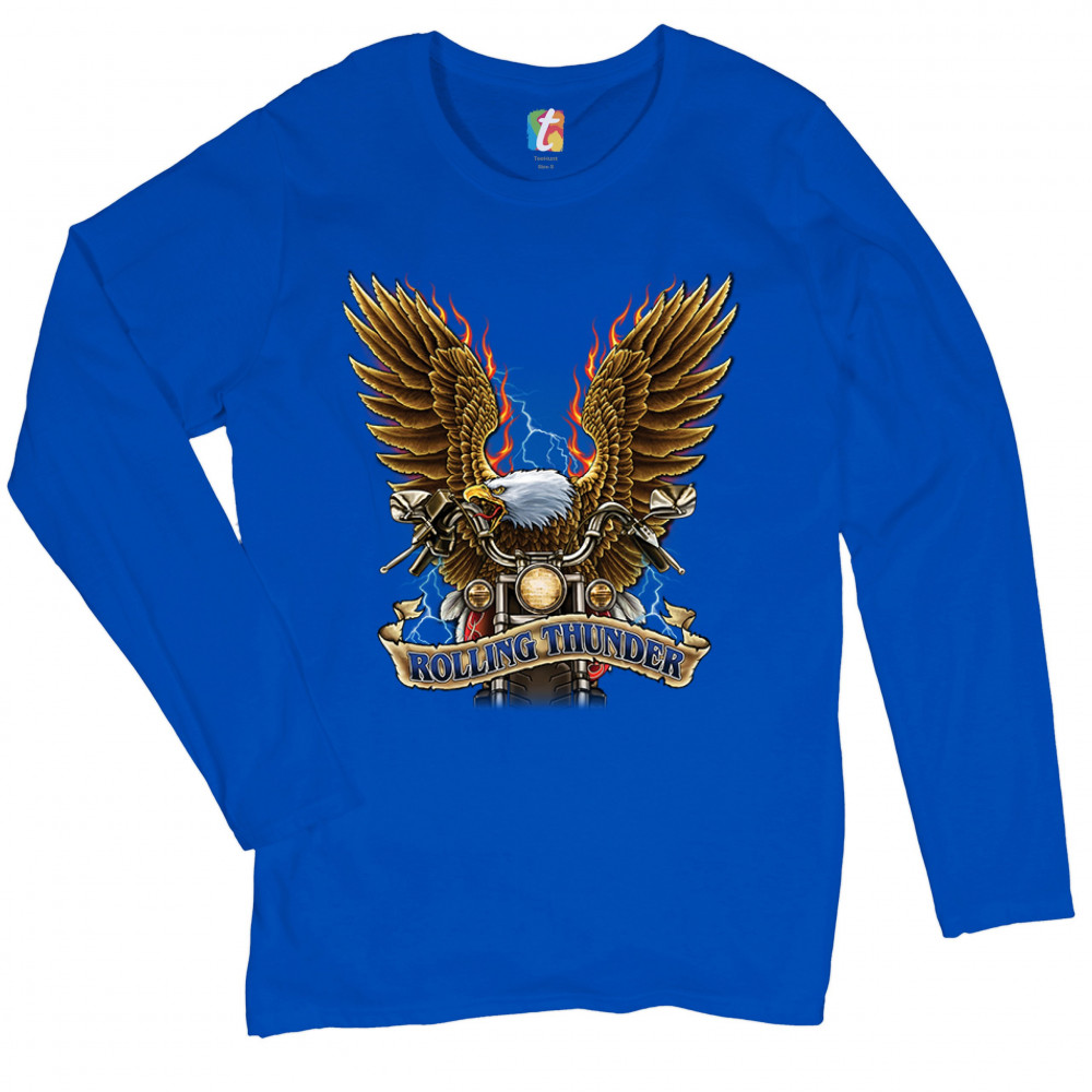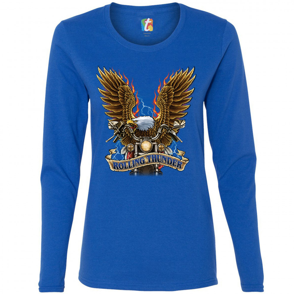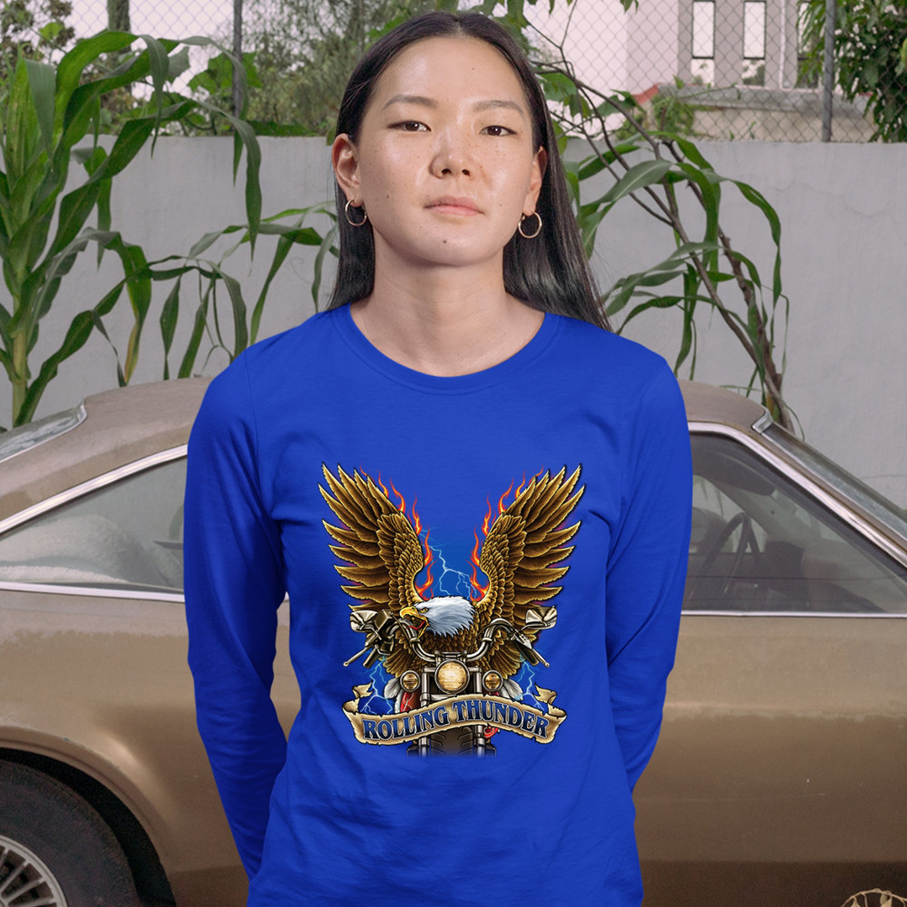 ROLLING THUNDER women's long sleeve t-shirt biker born to be wild bald eagle royal blue