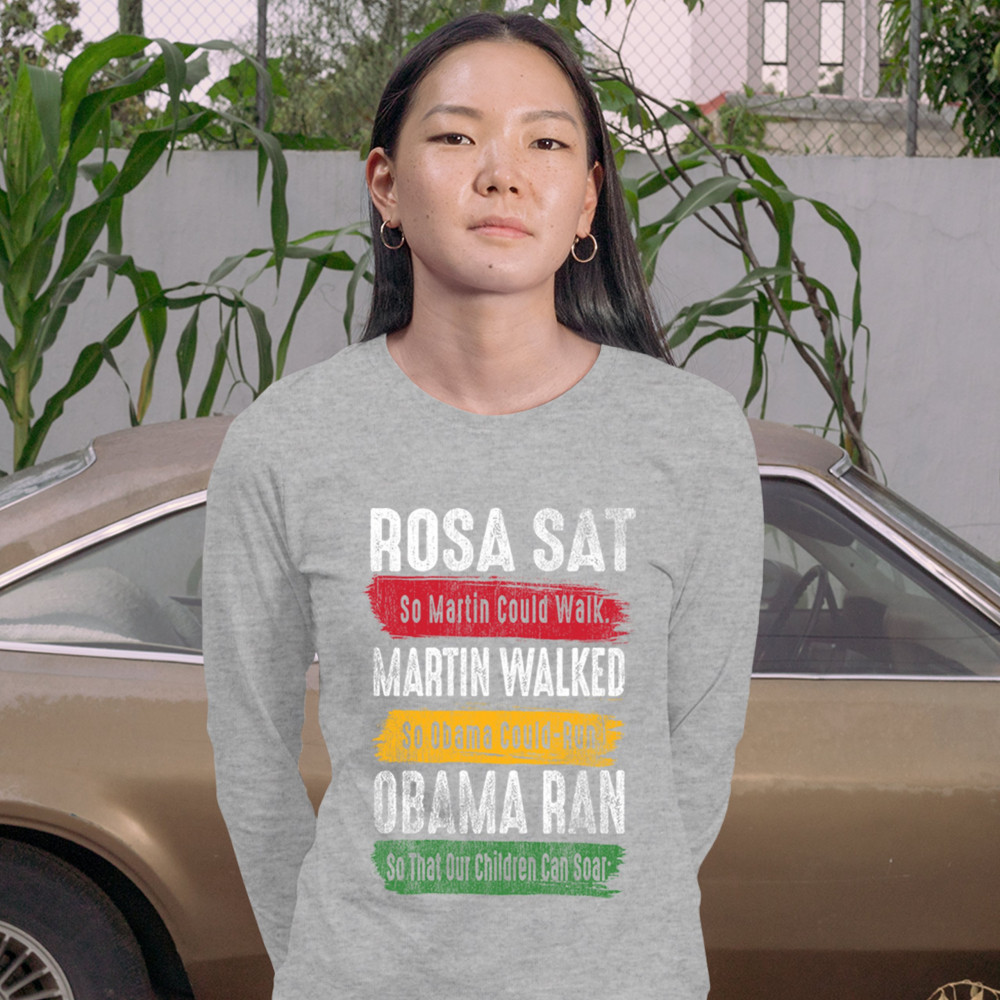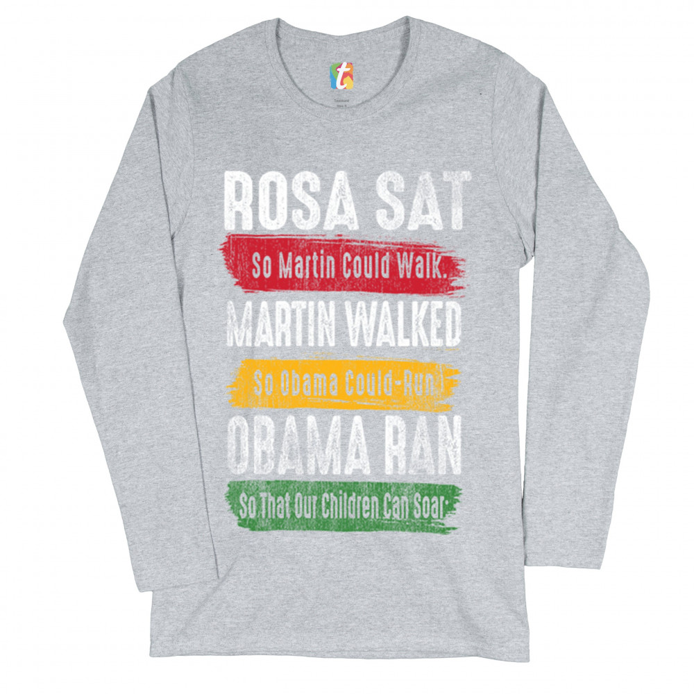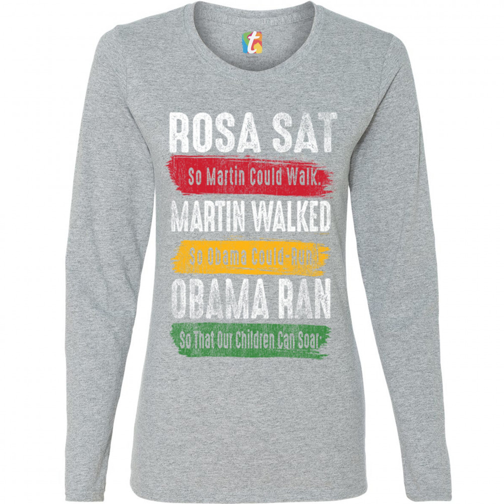 ROSA SAT MARTIN WALKED OBAMA RAN women's long sleeve t-shirt blm civil rights gray