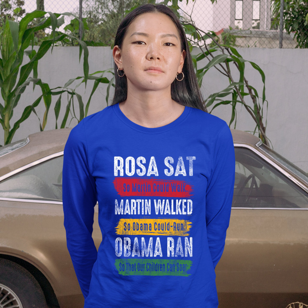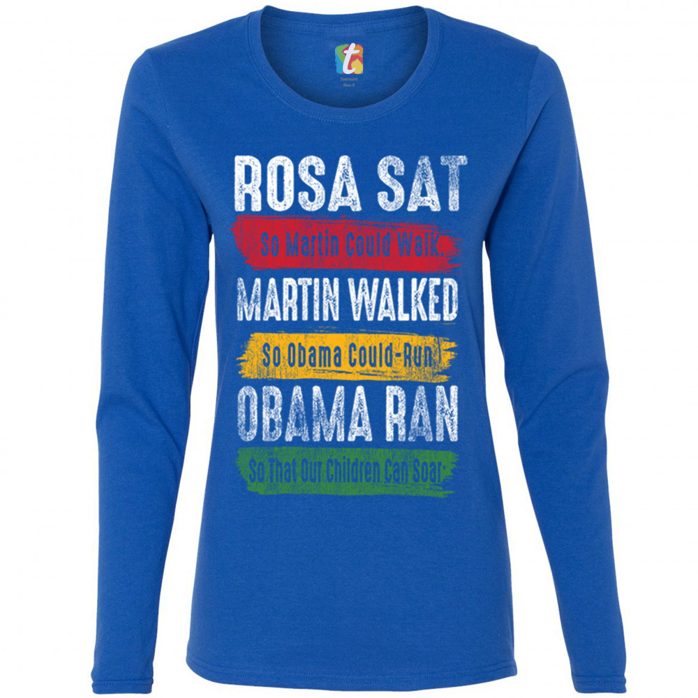 ROSA SAT MARTIN WALKED OBAMA RAN women's long sleeve t-shirt blm civil rights royal blue