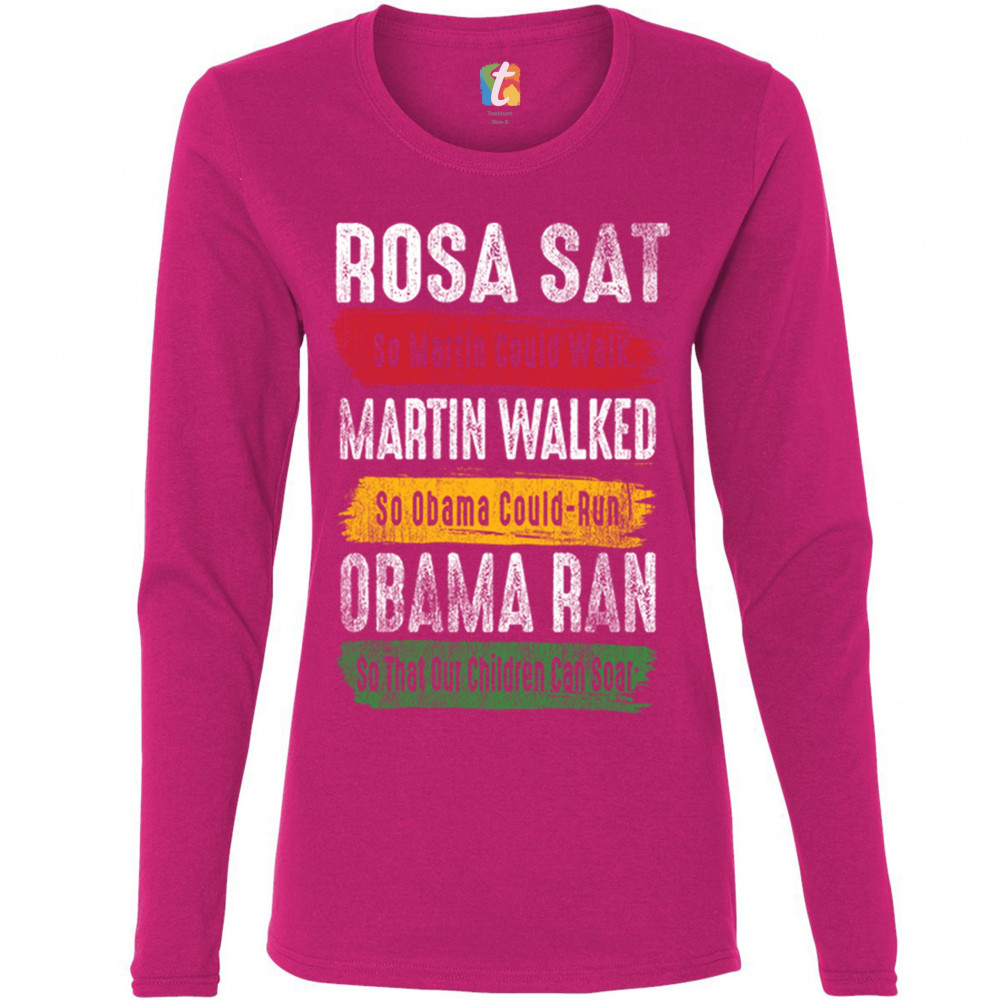 ROSA SAT MARTIN WALKED OBAMA RAN women's long sleeve t-shirt blm civil rights pink