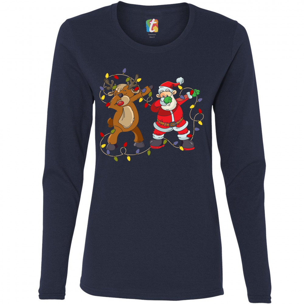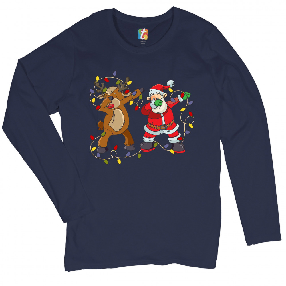 SANTA CLAUS AND RUDOLPH DAB DANCE women's long sleeve t-shirt merry christmas navy blue