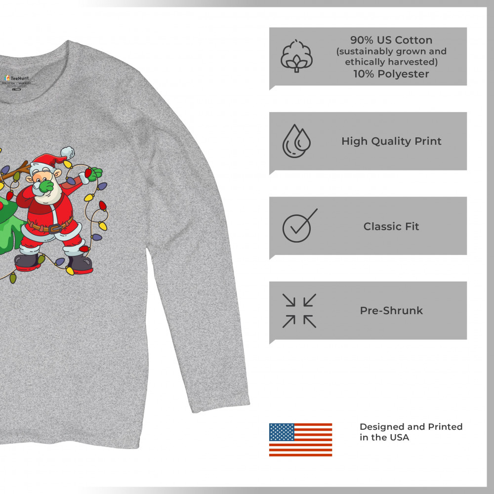 A funny print featuring a Christmas tree and Santa Claus dab dancing while surrounded by Christmas lights. Amazing choice to make people smile and spread positive vibes on Christmas Eve.