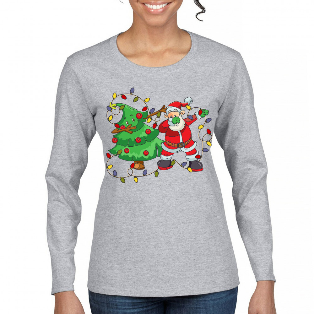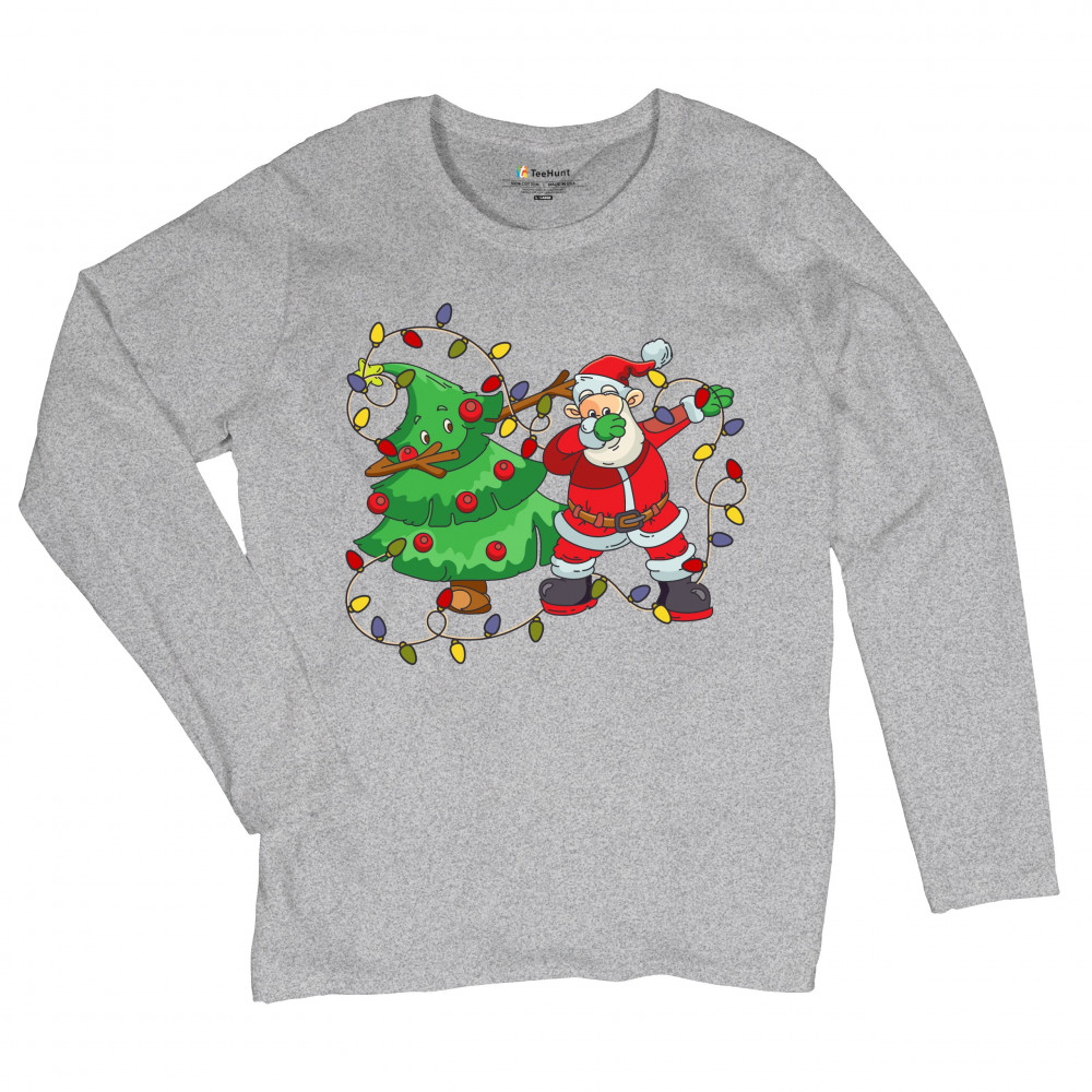 SANTA CLAUS DABBING WITH CHRISTMAS TREE women's long sleeve t-shirt merry xmas gray