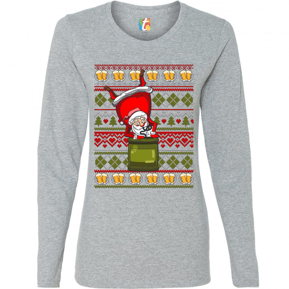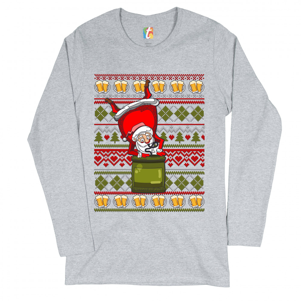 SANTA CLAUS KEG STAND women's long sleeve t-shirt christmas ugly sweater beer gray