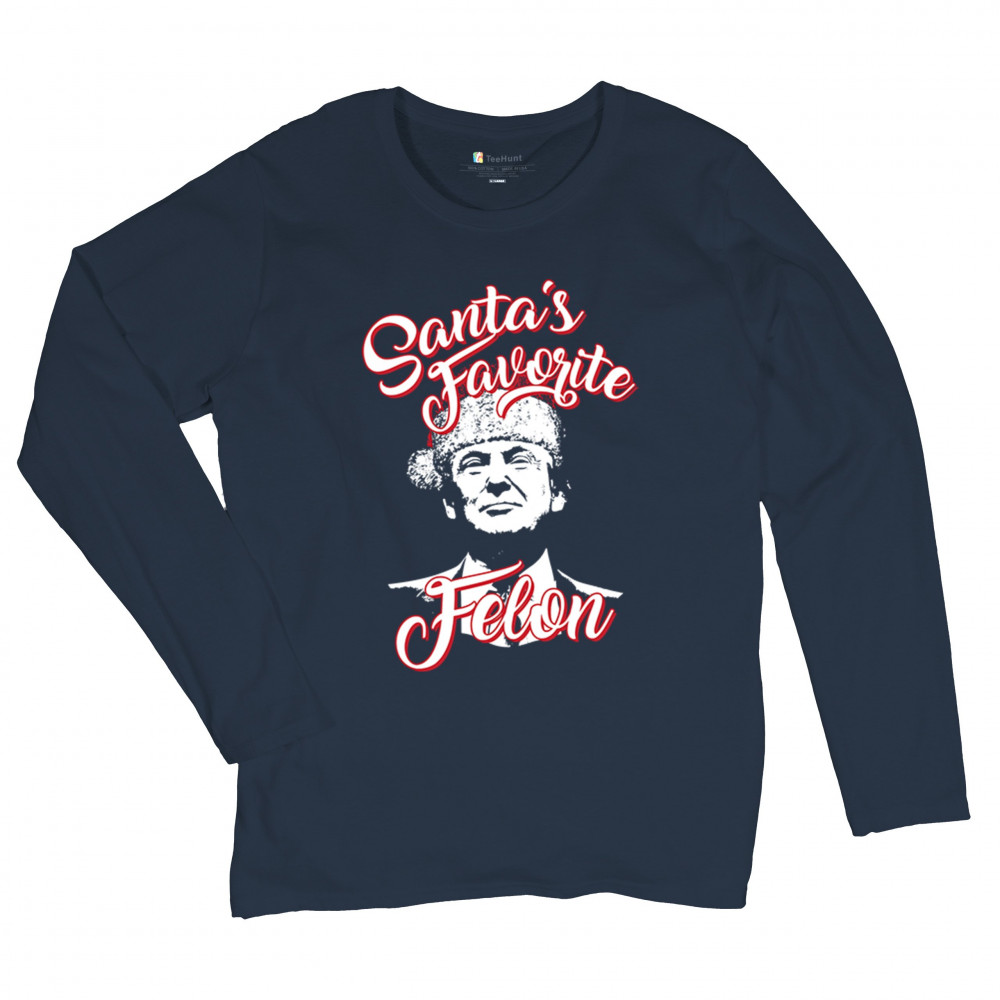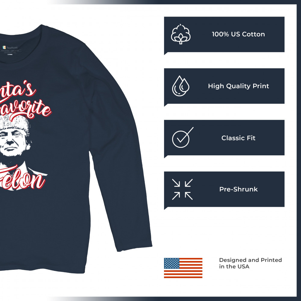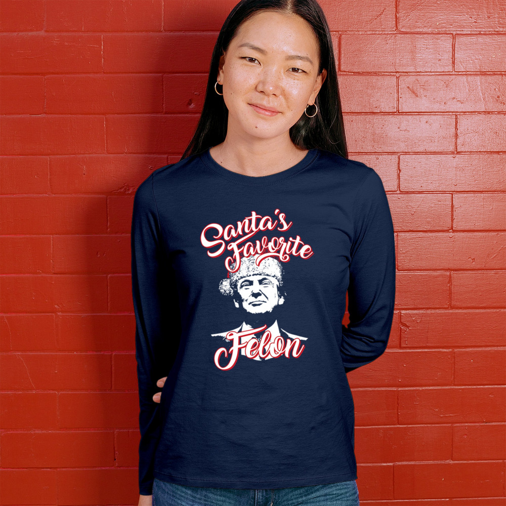 Celebrate the holidays with a touch of humor and political flair with the "Santa's Favorite Felon" design featuring Donald J. Trump. Perfect for Christmas parties, gift exchanges, and festive mornings, this standout design is ideal for sweatshirts, pajamas, or unique holiday gifts. A blend of humor and holiday spirit, this piece is a hit for ugly sweater contests and merry gatherings.