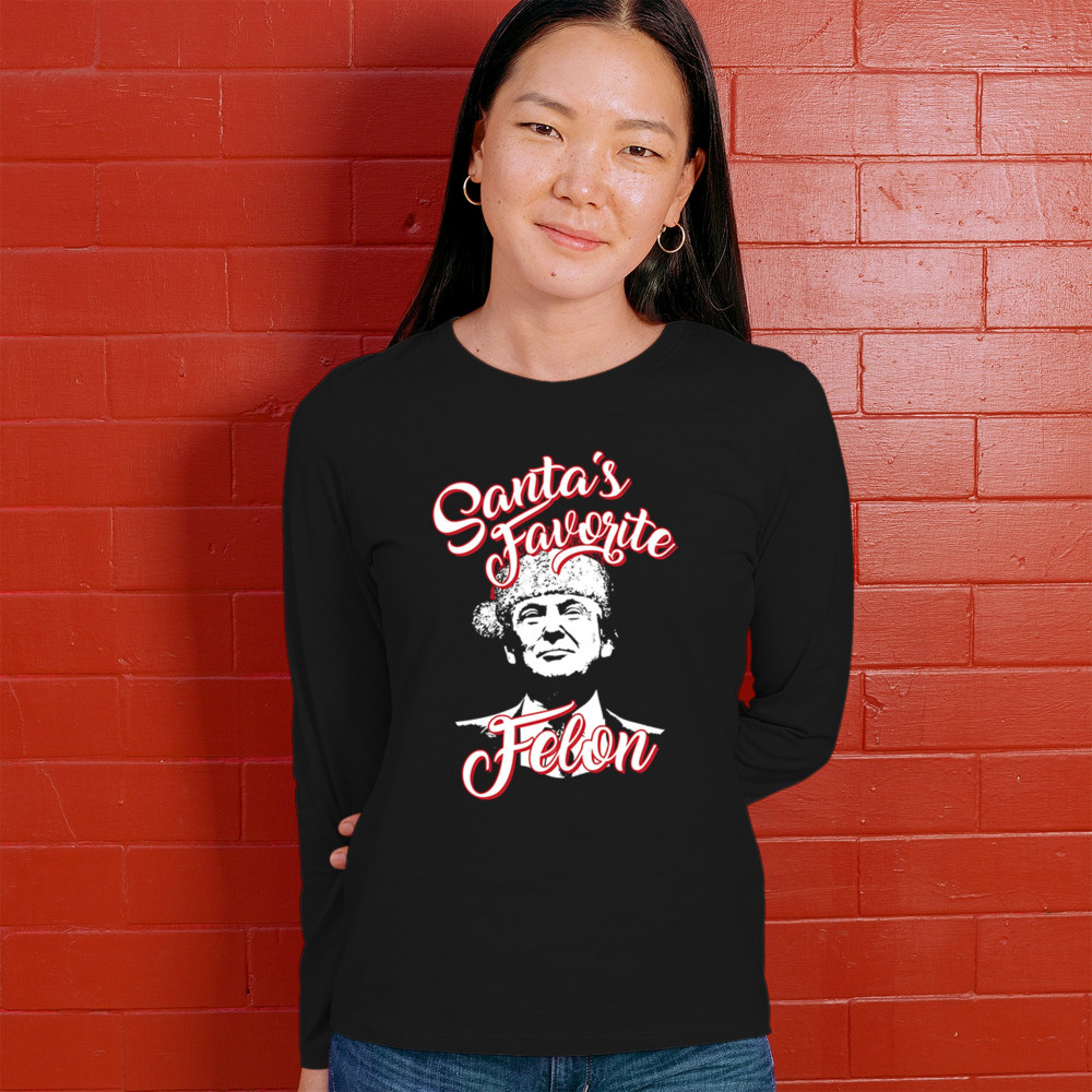 Celebrate the holidays with a touch of humor and political flair with the "Santa's Favorite Felon" design featuring Donald J. Trump. Perfect for Christmas parties, gift exchanges, and festive mornings, this standout design is ideal for sweatshirts, pajamas, or unique holiday gifts. A blend of humor and holiday spirit, this piece is a hit for ugly sweater contests and merry gatherings.