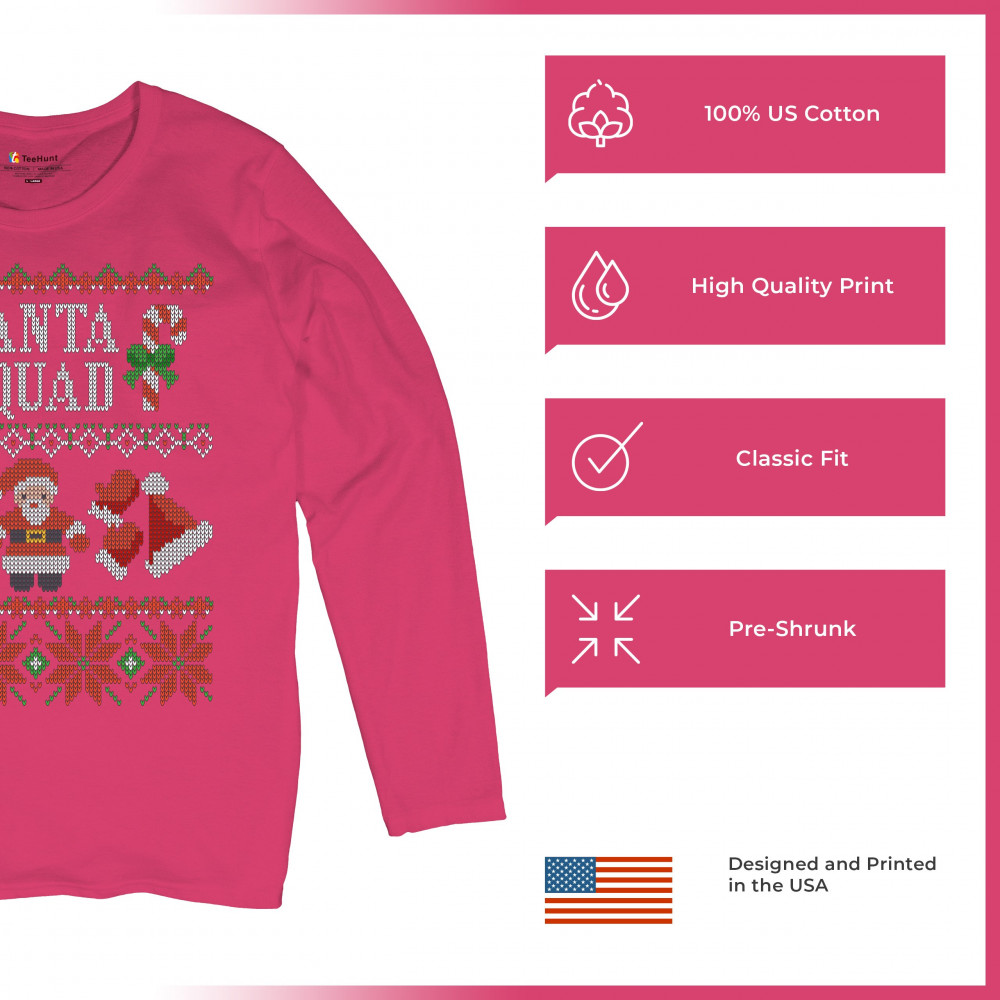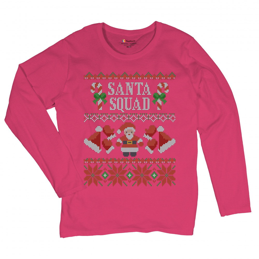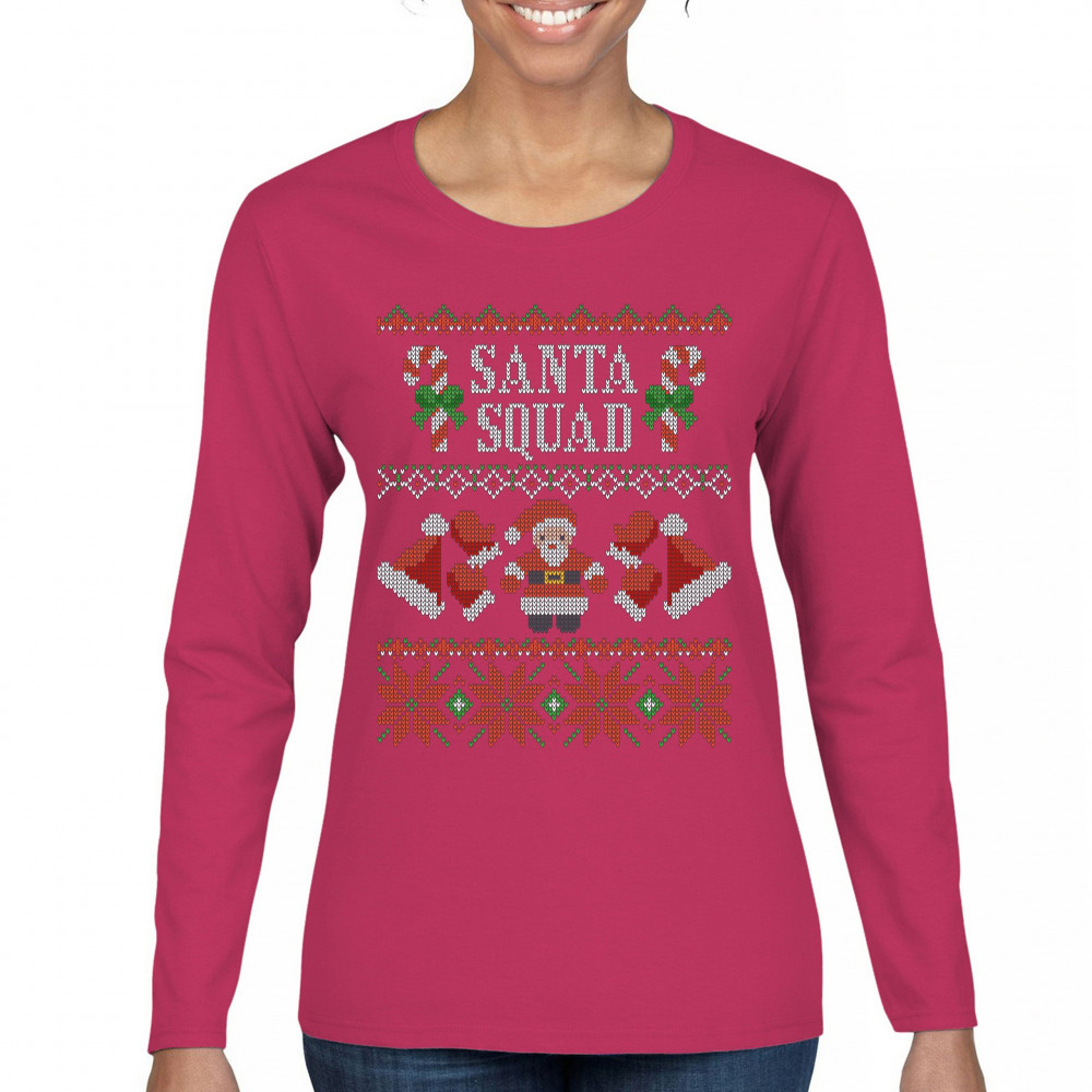 SANTA SQUAD women's long sleeve t-shirt ugly sweater merry and bright christmas pink