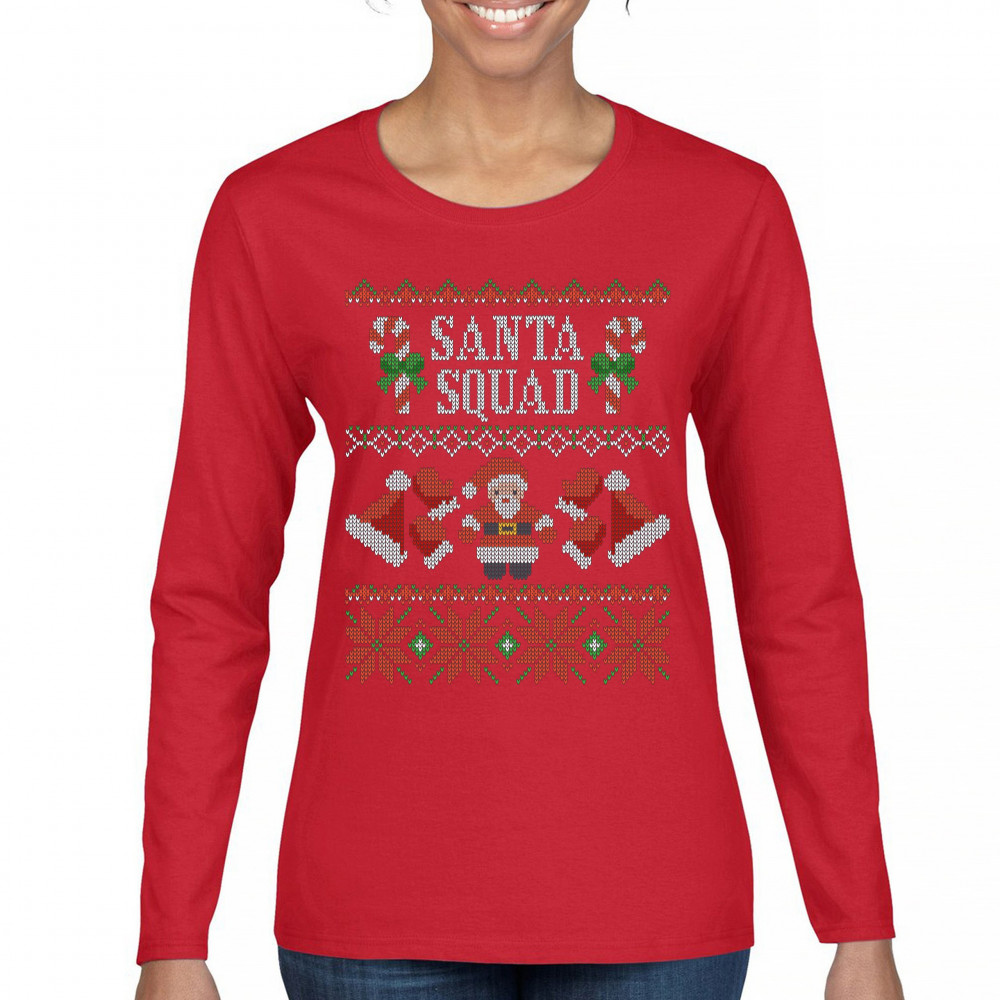 SANTA SQUAD women's long sleeve t-shirt ugly sweater merry and bright christmas red