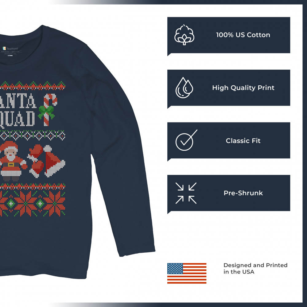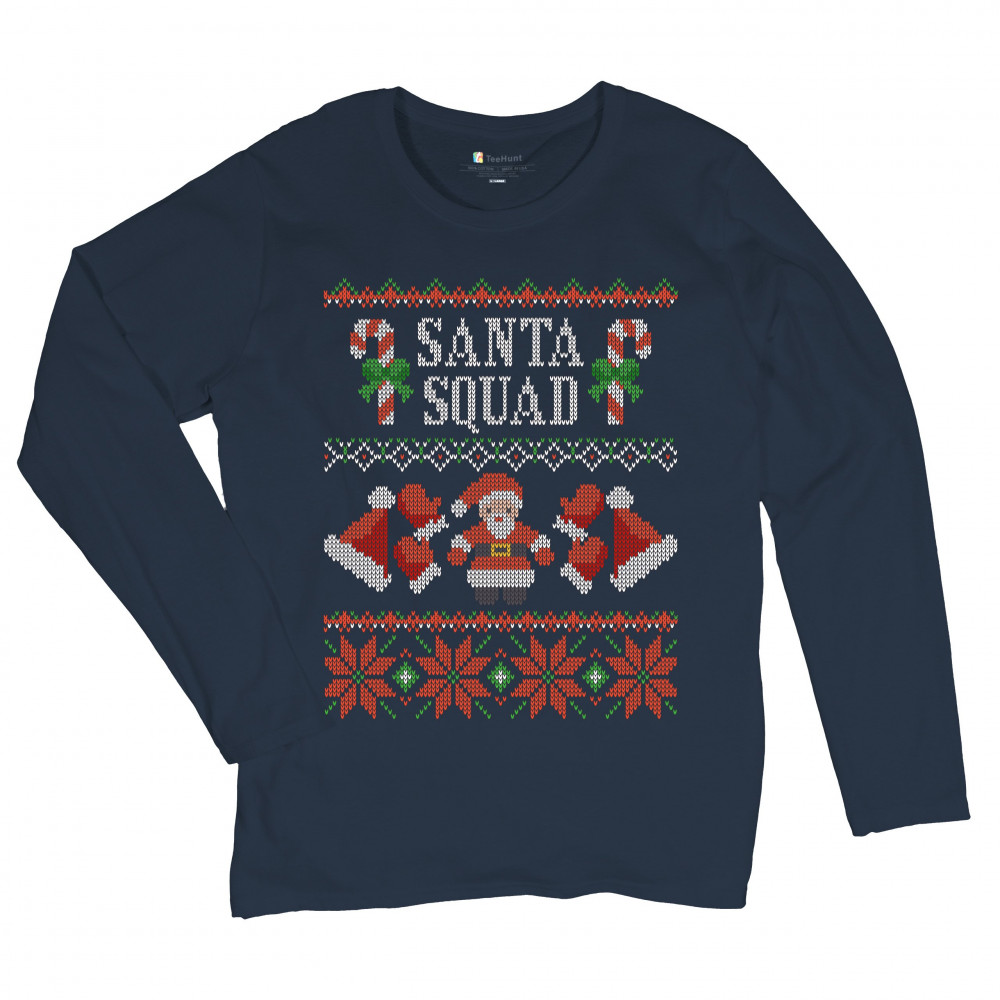 SANTA SQUAD women's long sleeve t-shirt ugly sweater merry and bright christmas navy blue