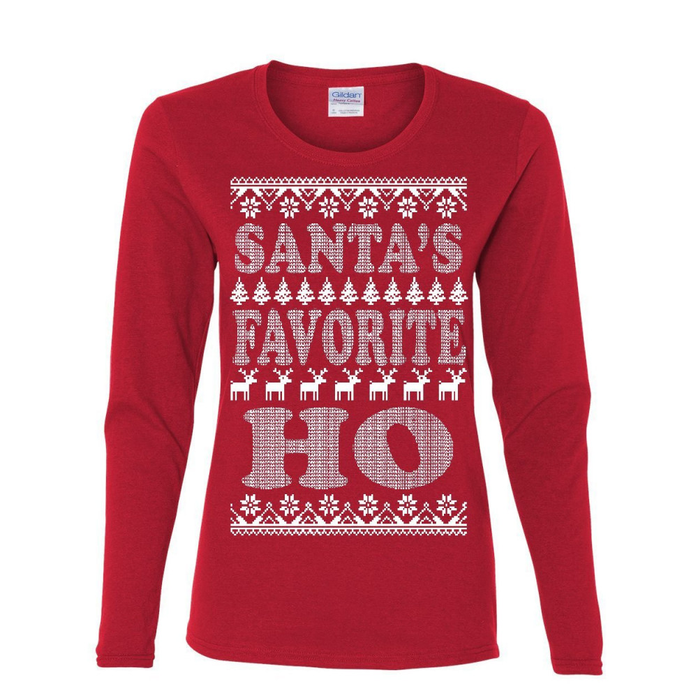 SANTA'S FAVORITE HO women's long sleeve t-shirt ugly sweatshirt xmas ho ho ho red