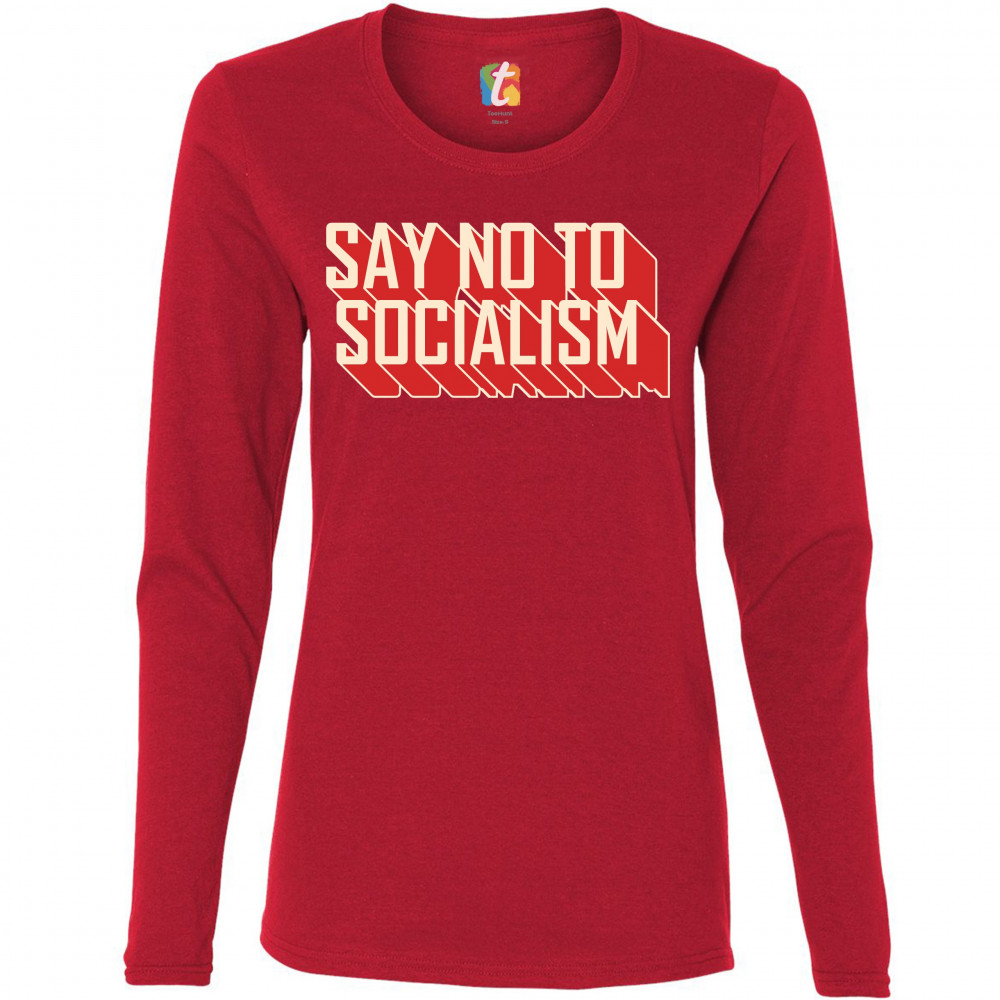 SAY NO TO SOCIALISM women's long sleeve t-shirt only you can prevent socialism red