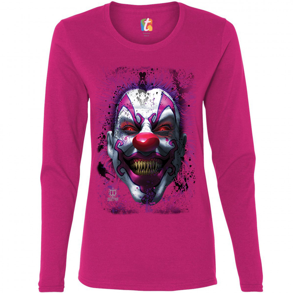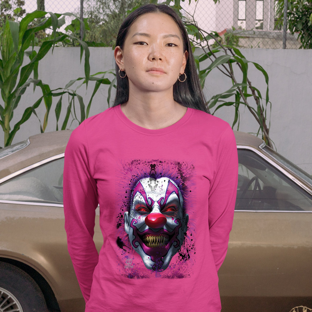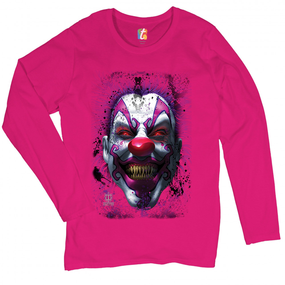 SCARY CREEPY GRINNING CLOWN women's long sleeve t-shirt spooky halloween horror pink