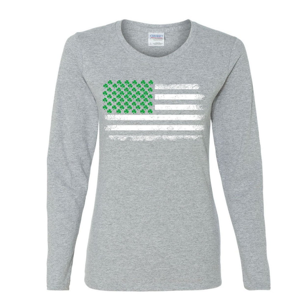 SHAMROCK AMERICAN FLAG women's long sleeve tee stars and stripes st. patrick's gray