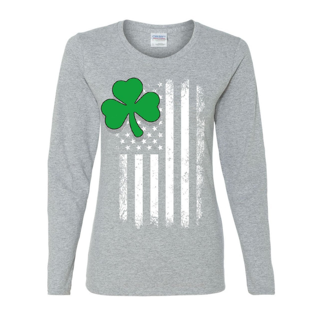 SHAMROCK FLAG STARS AND STRIPES women's long sleeve tee irish st. patrick's day gray