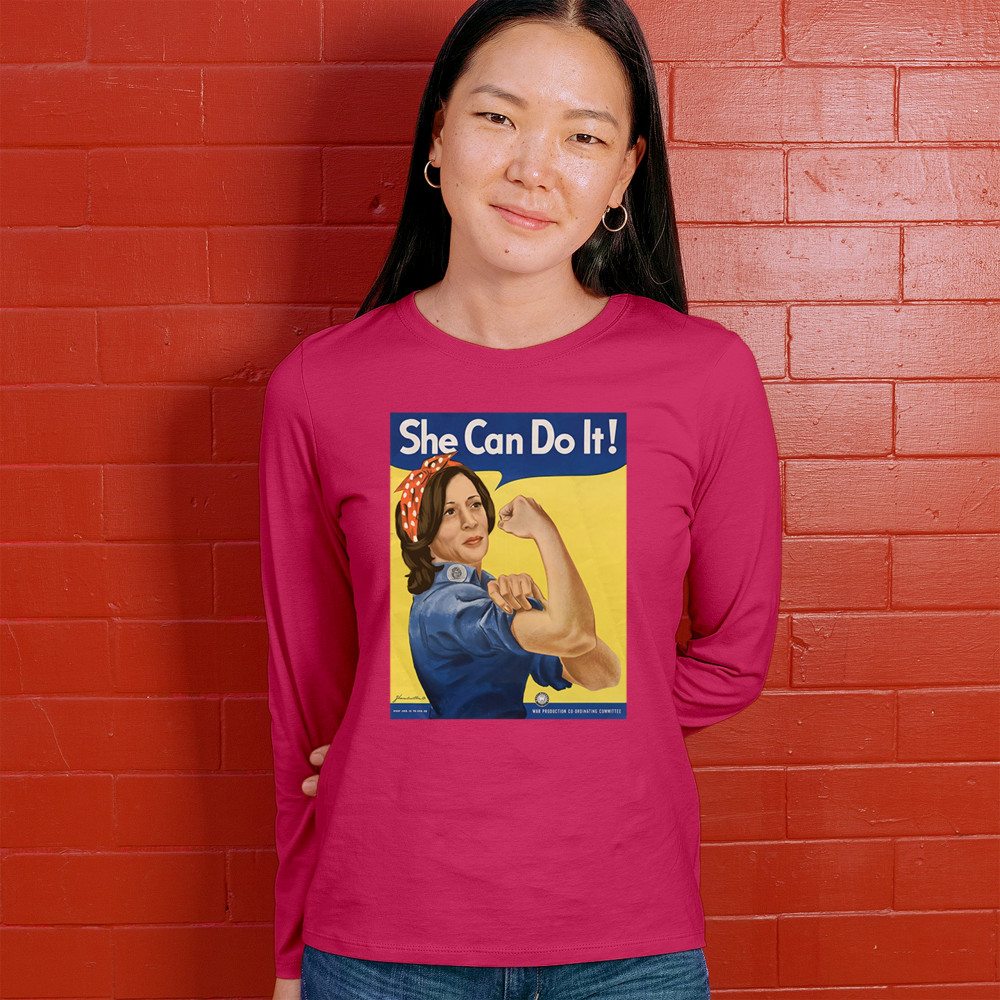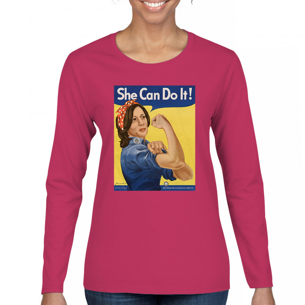 Show your support for Kamala Harris in 2024 with this empowering "She Can Do It!" design. Inspired by Rosie the Riveter, it symbolizes strength, equality, and progress.