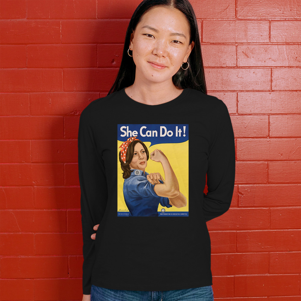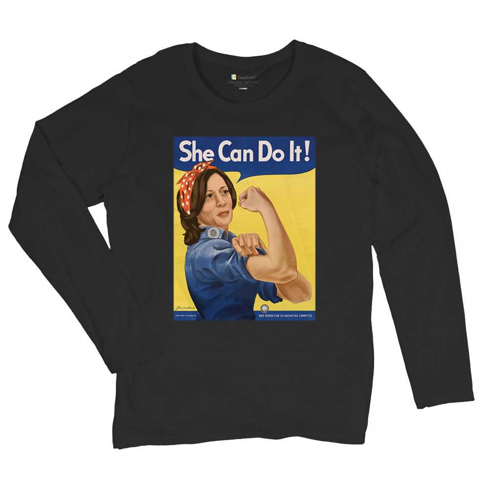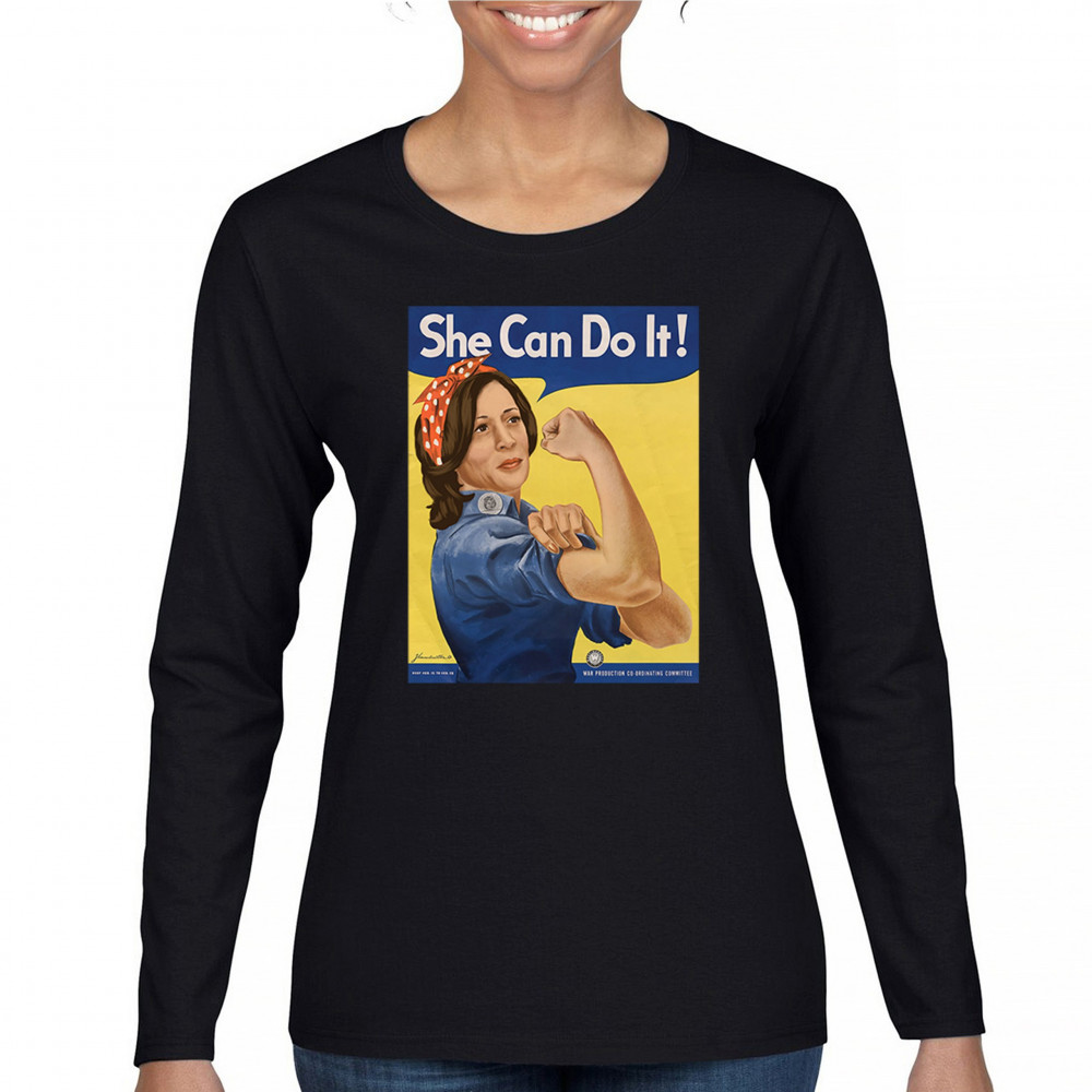 Show your support for Kamala Harris in 2024 with this empowering "She Can Do It!" design. Inspired by Rosie the Riveter, it symbolizes strength, equality, and progress.
