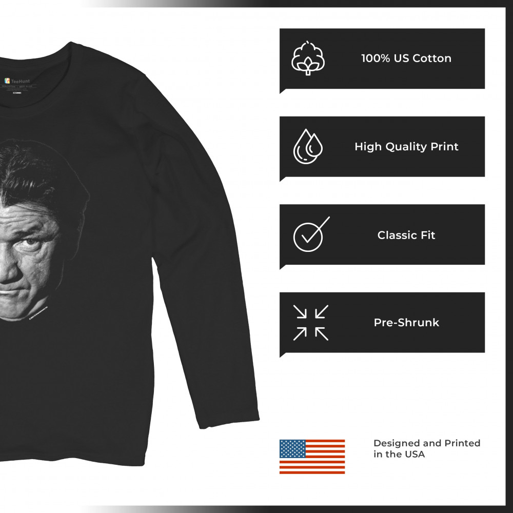 Embrace the humor of the legendary Three Stooges with this captivating design, featuring the unforgettable Shemp. Known for his spontaneity and comedic genius, Shemp's 'dumbfounded' look is immortalized in this high-contrast piece, offering a nostalgic nod to the golden era of slapstick. Perfect for Stooge enthusiasts and collectors, it adds a touch of classic comedy flair to any ensemble.