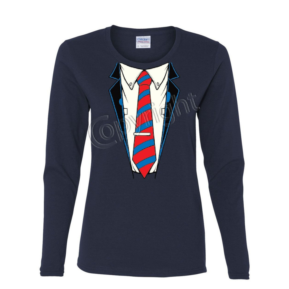 SHIRT AND TIE women's long sleeve t-shirt office suit casual funny navy blue