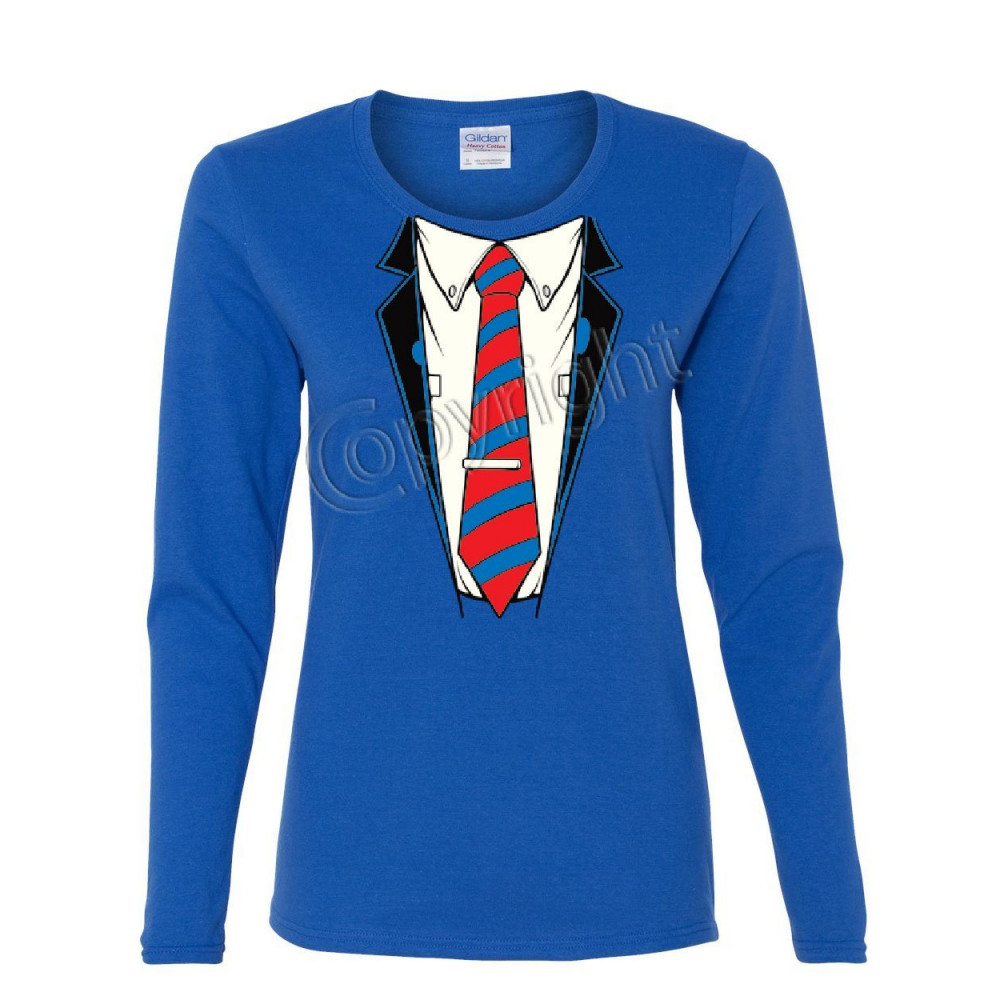 SHIRT AND TIE women's long sleeve t-shirt office suit casual funny royal blue