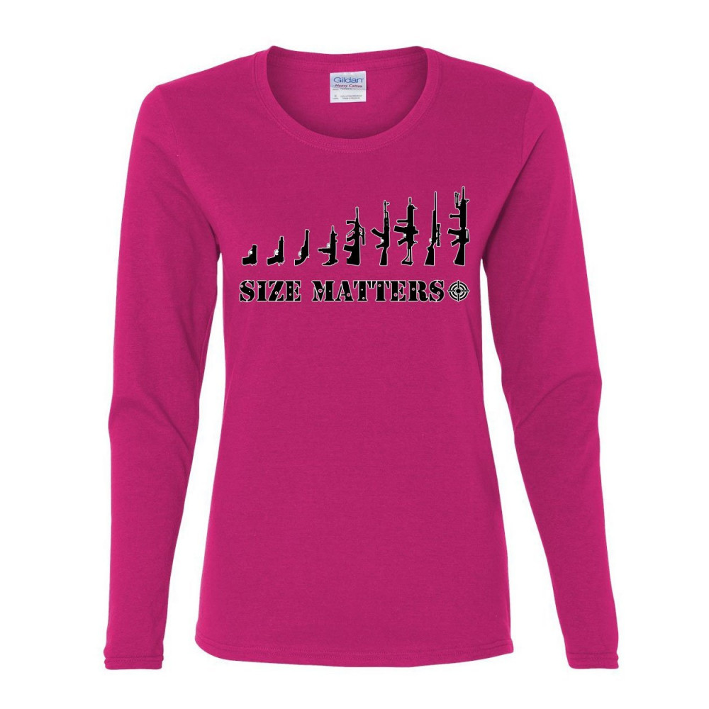 SIZE MATTERS 2a women's long sleeve tee defend 2nd amendment pro guns weapons hot pink