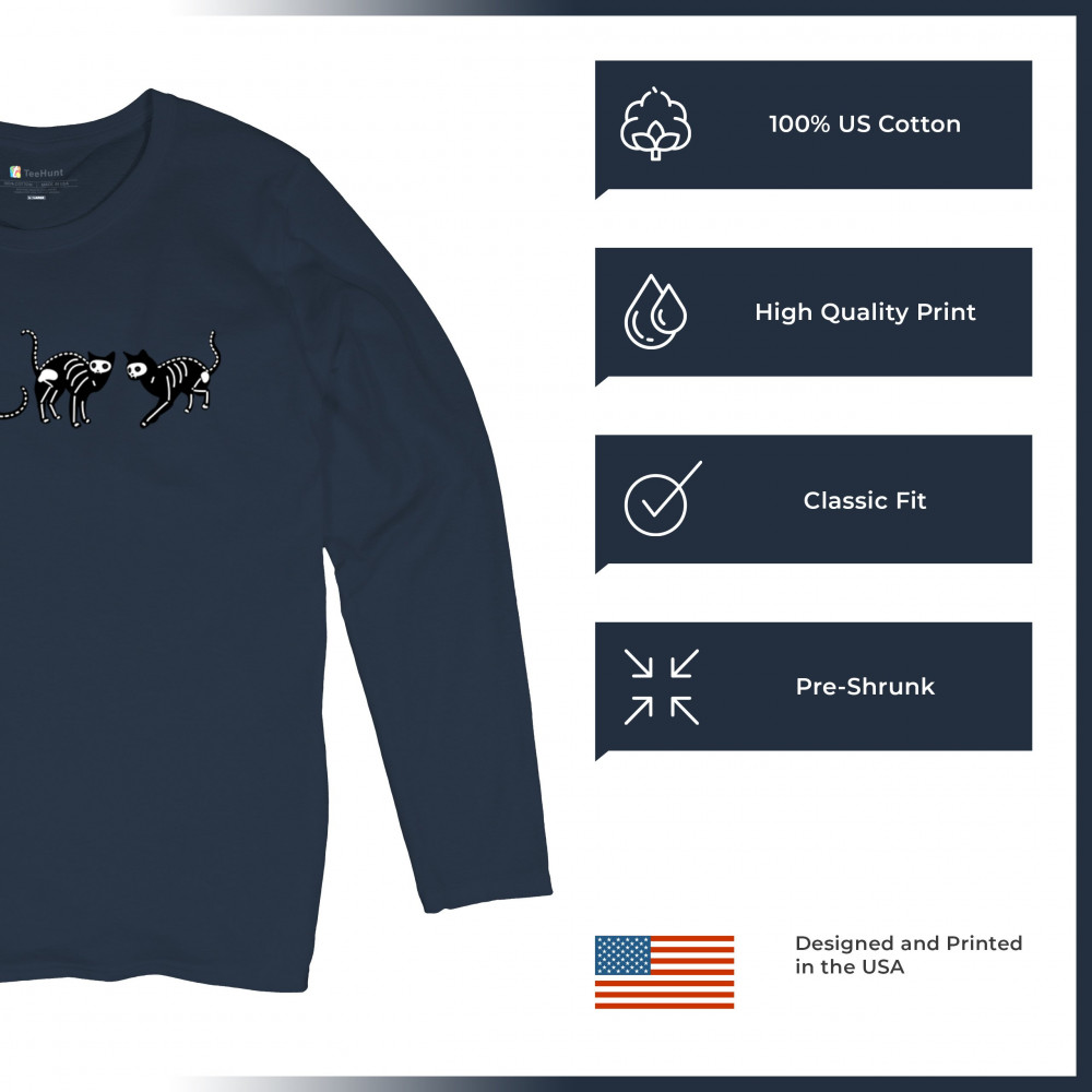 Spooky skeleton cat design for Halloween fans. Perfect for haunted houses, scary Jack o Lantern nights, creepy costumes, and trick-or-treat fun.