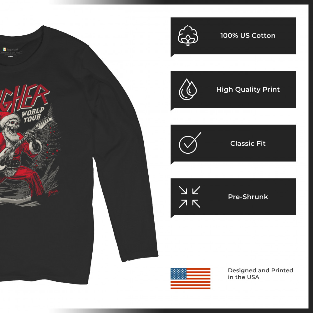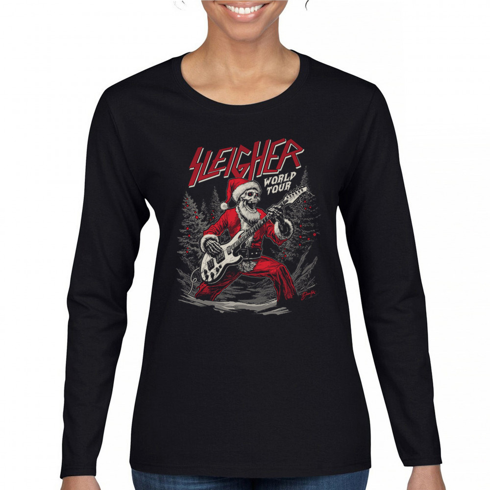 Bring the perfect mix of holiday cheer and rock ‘n’ roll to your wardrobe with the "Sleigher World Tour" design! Featuring a Santa skeleton rocking an electric guitar, this unique and edgy artwork is ideal for music lovers, ugly sweater contests, and festive gatherings. Celebrate Christmas with a rebellious twist and make every holiday event unforgettable!