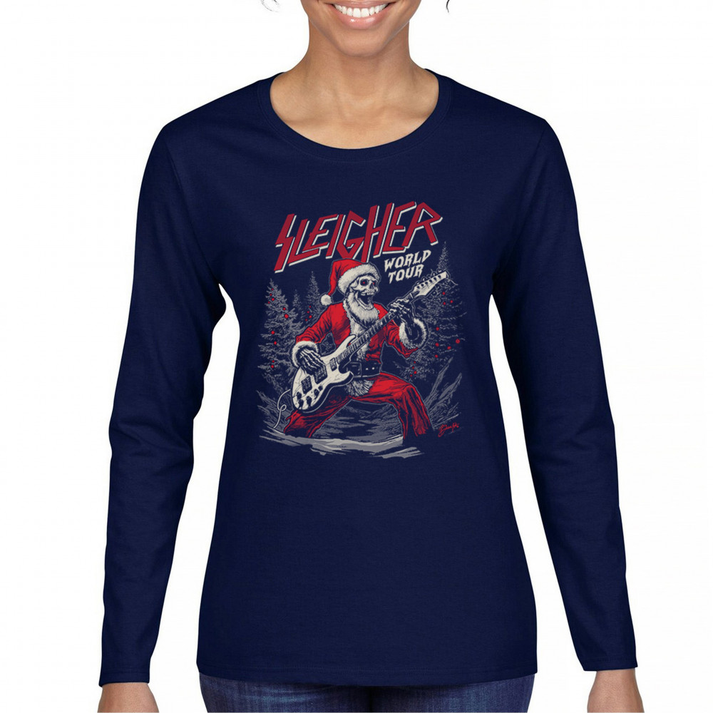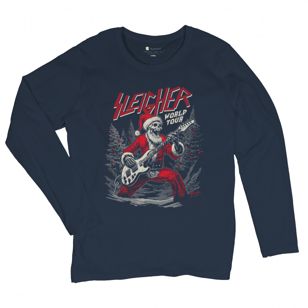 Bring the perfect mix of holiday cheer and rock ‘n’ roll to your wardrobe with the "Sleigher World Tour" design! Featuring a Santa skeleton rocking an electric guitar, this unique and edgy artwork is ideal for music lovers, ugly sweater contests, and festive gatherings. Celebrate Christmas with a rebellious twist and make every holiday event unforgettable!
