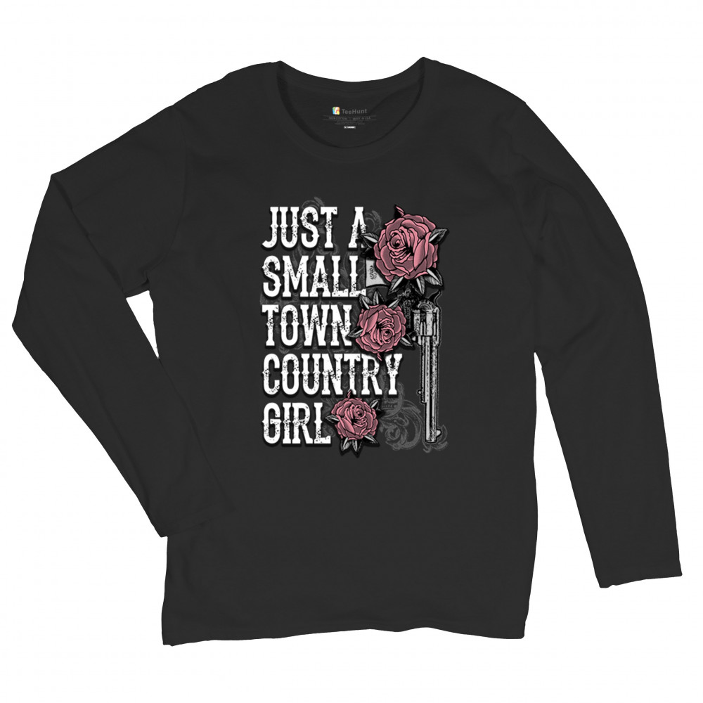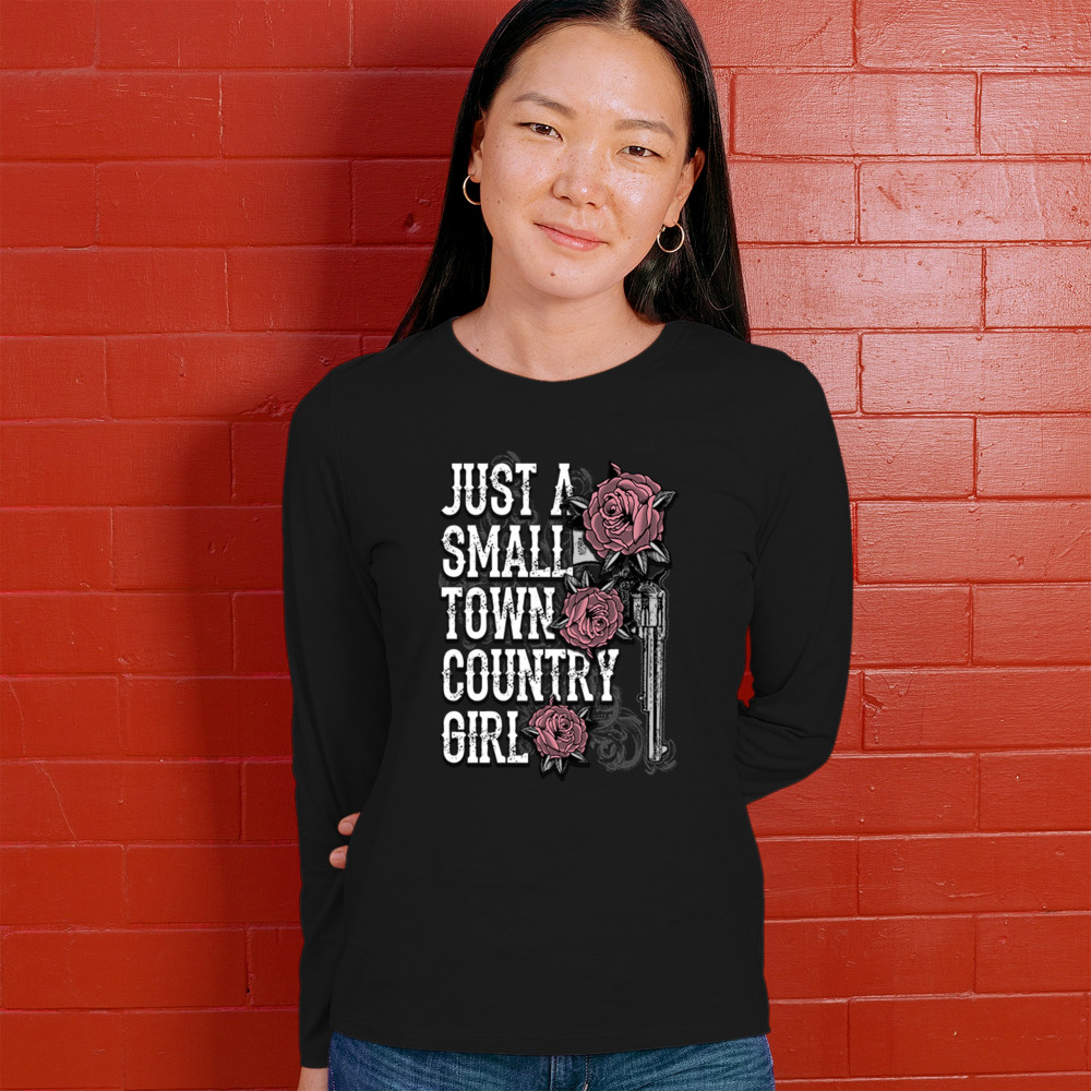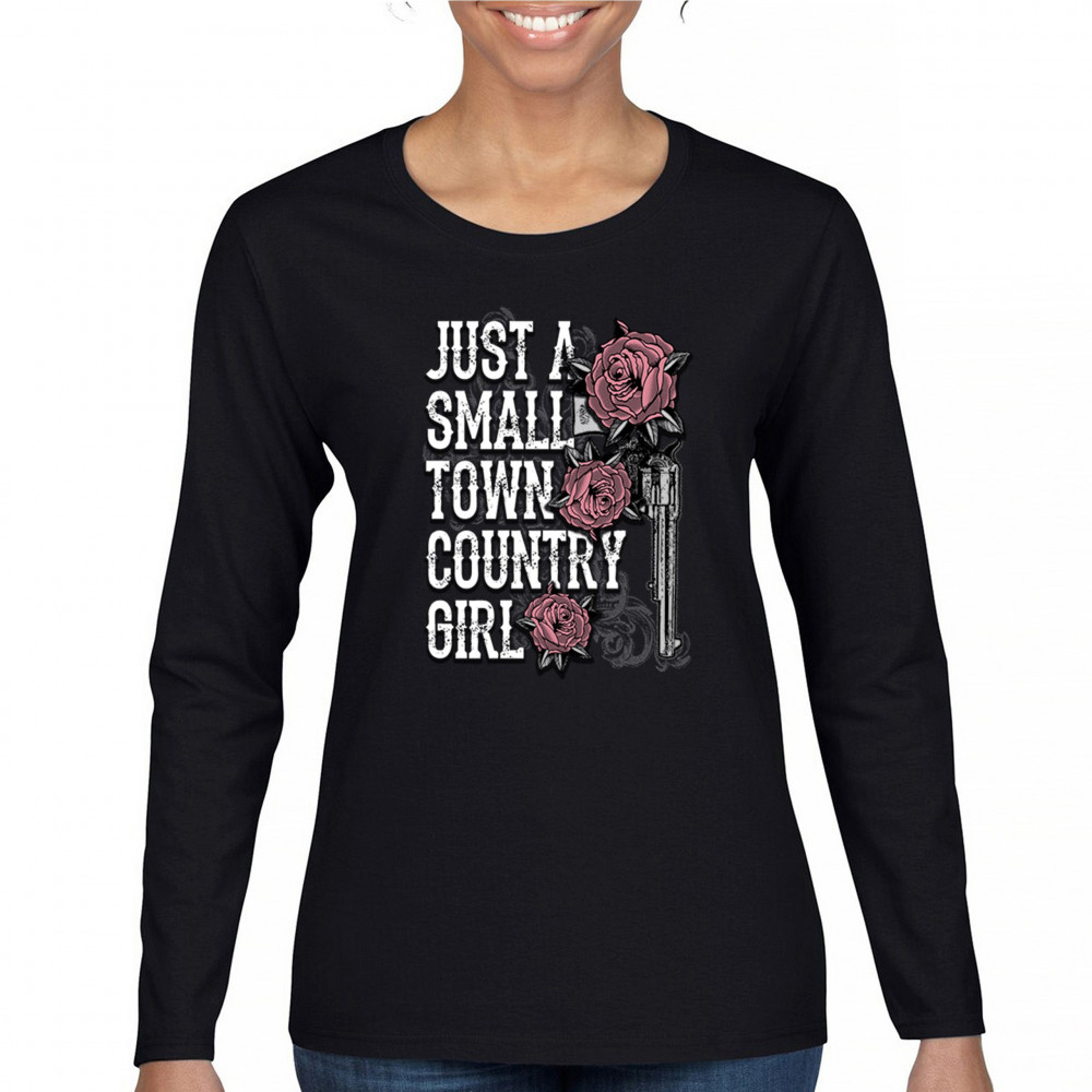Rustic small town country girl design with rose and revolver art. Great for cowgirls, rodeos, fairs, and southern pride style.