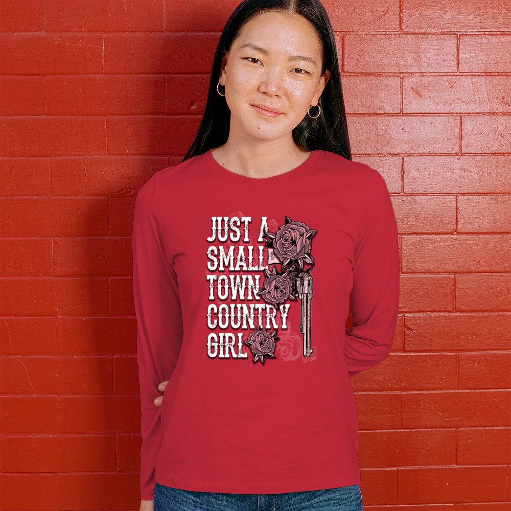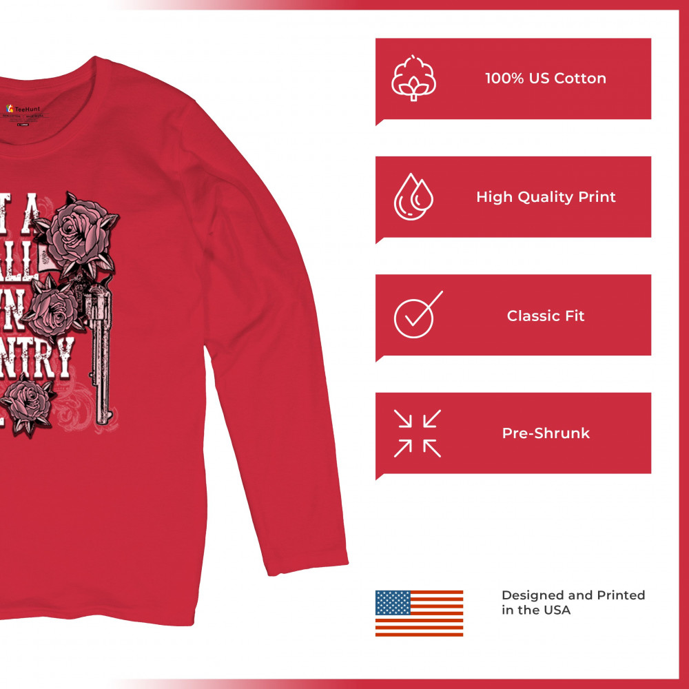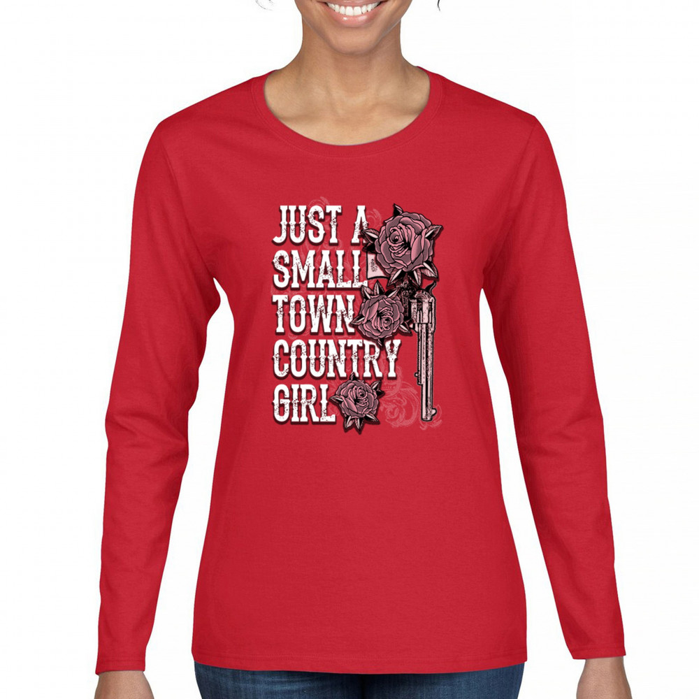 Rustic small town country girl design with rose and revolver art. Great for cowgirls, rodeos, fairs, and southern pride style.