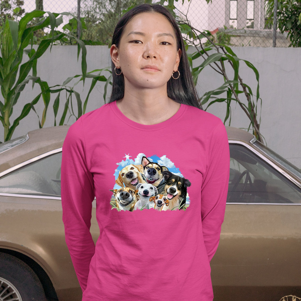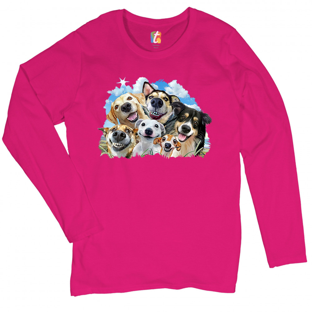 SMILING DOGS' SELFIE women's long sleeve t-shirt funny animal dog lover cute pink
