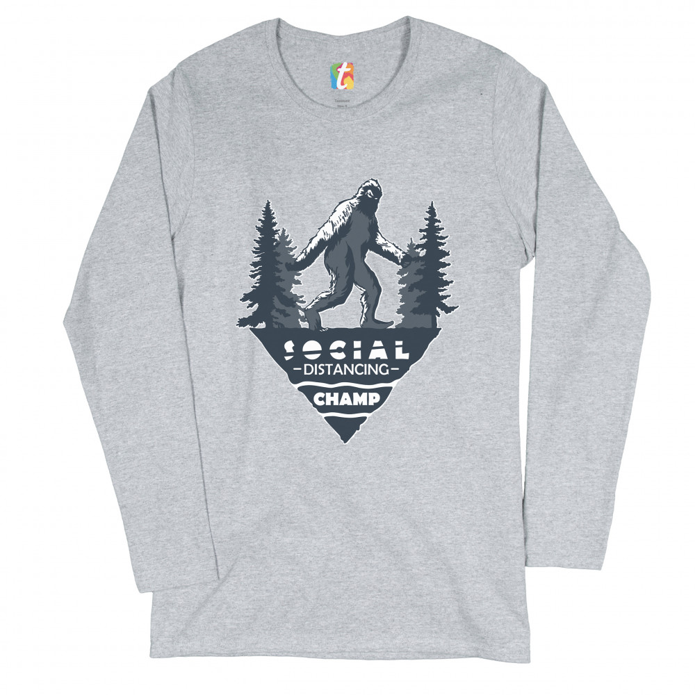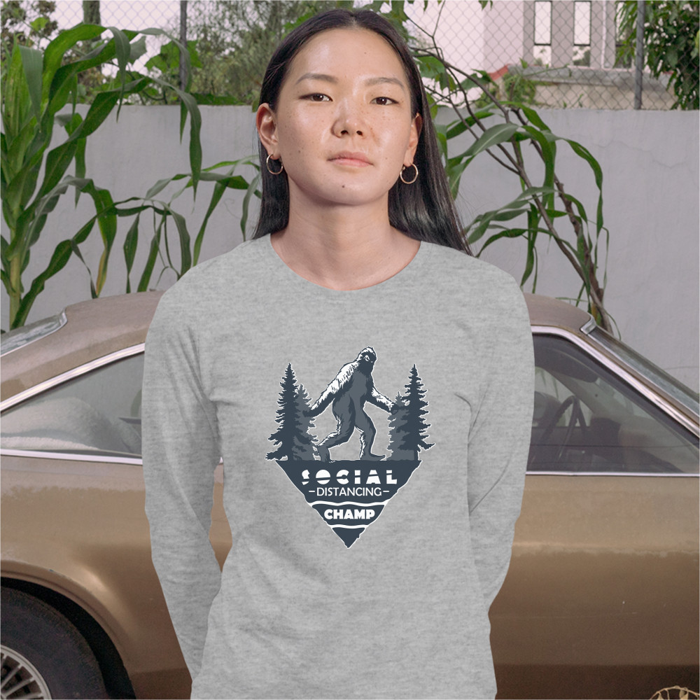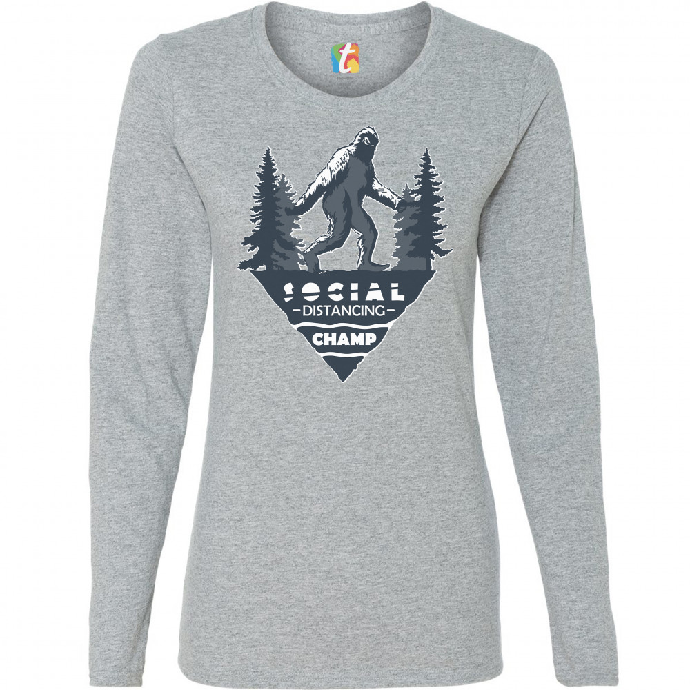 SOCIAL DISTANCING CHAMP women's long sleeve t-shirt bigfoot yeti quarantine gray