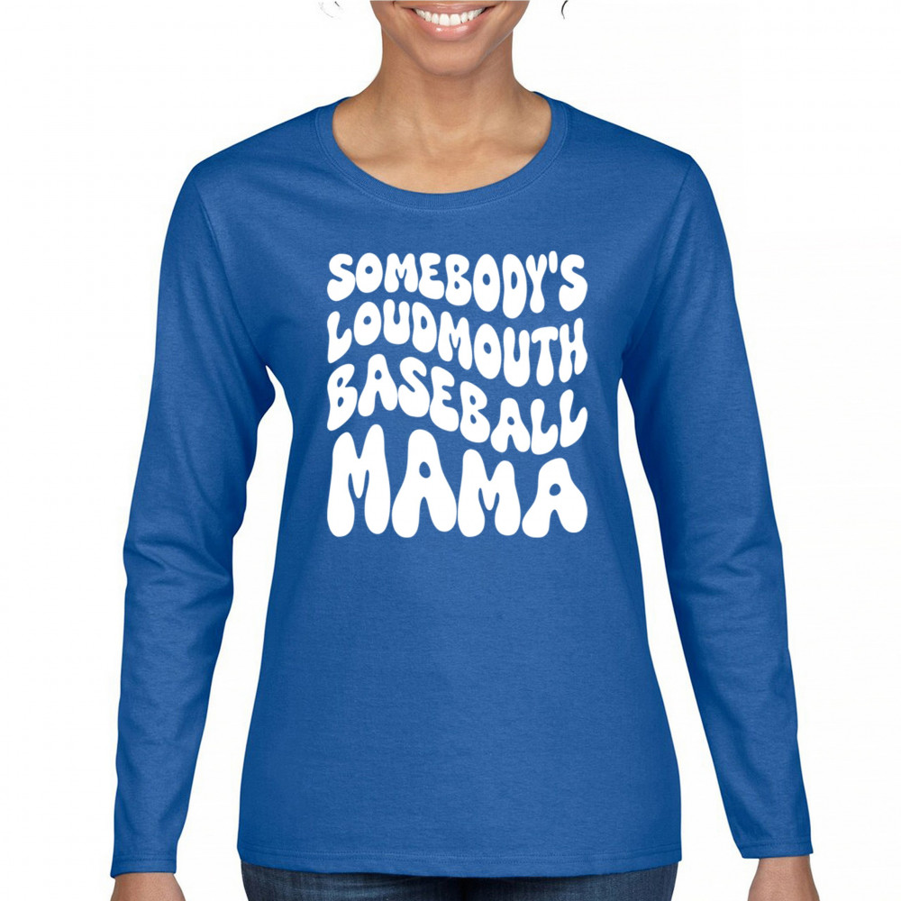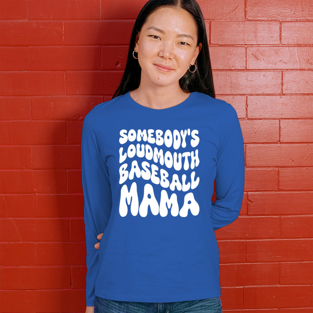 Show off your spirited support with the "Somebody's Loudmouth Baseball Mama" design. Perfect for game days, this bold and playful design captures your enthusiasm and pride.