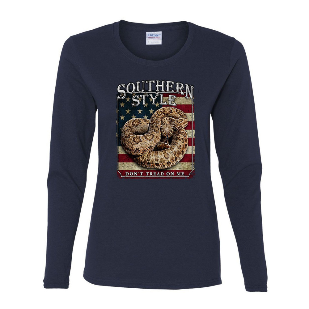 SOUTHERN STYLE RATTLESNAKE women's long sleeve tee don't tread on me gadsden usa navy blue
