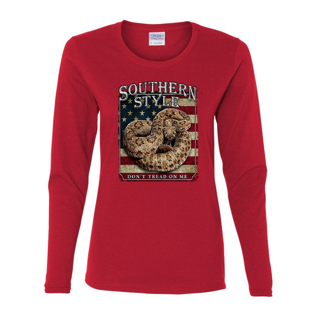SOUTHERN STYLE RATTLESNAKE women's long sleeve tee don't tread on me gadsden usa red