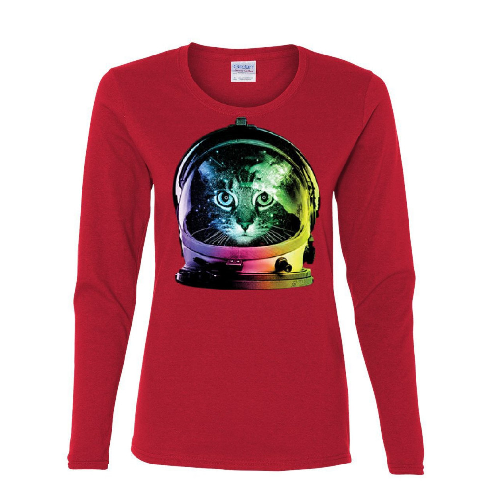 SPACE CAT long sleeve t-shirt astronaut kitten neon galaxy red