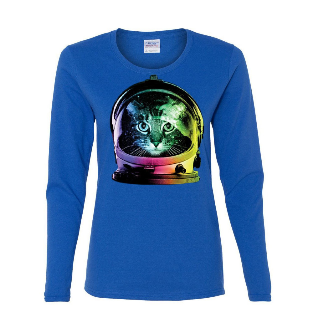 SPACE CAT long sleeve t-shirt astronaut kitten neon galaxy royal blue
