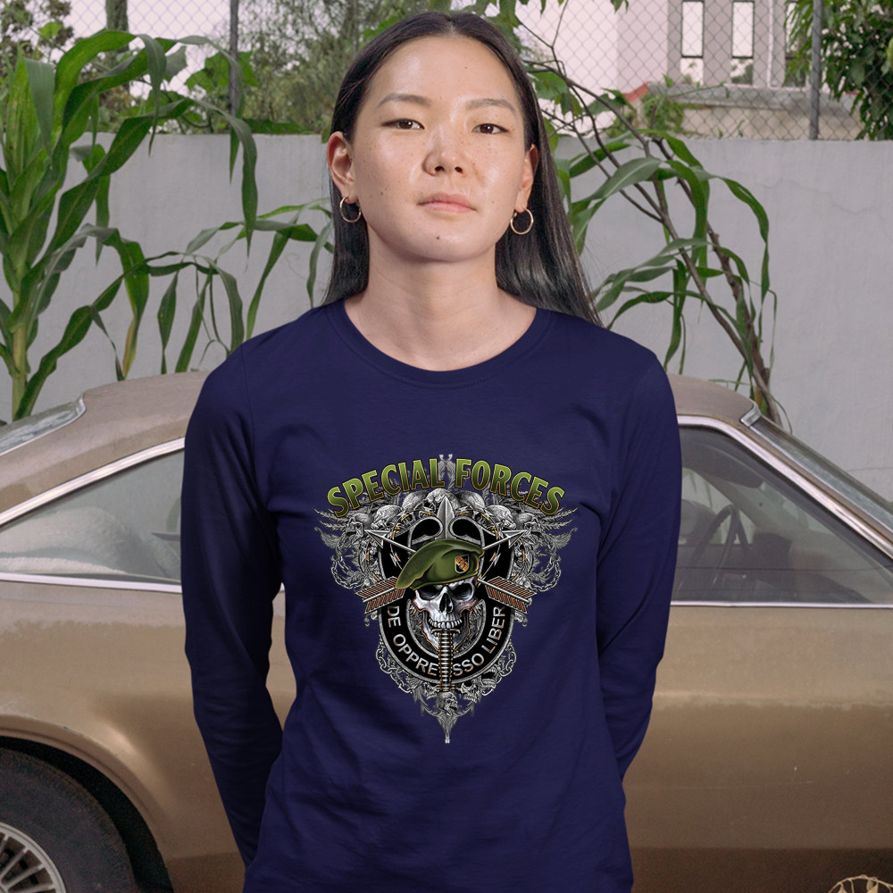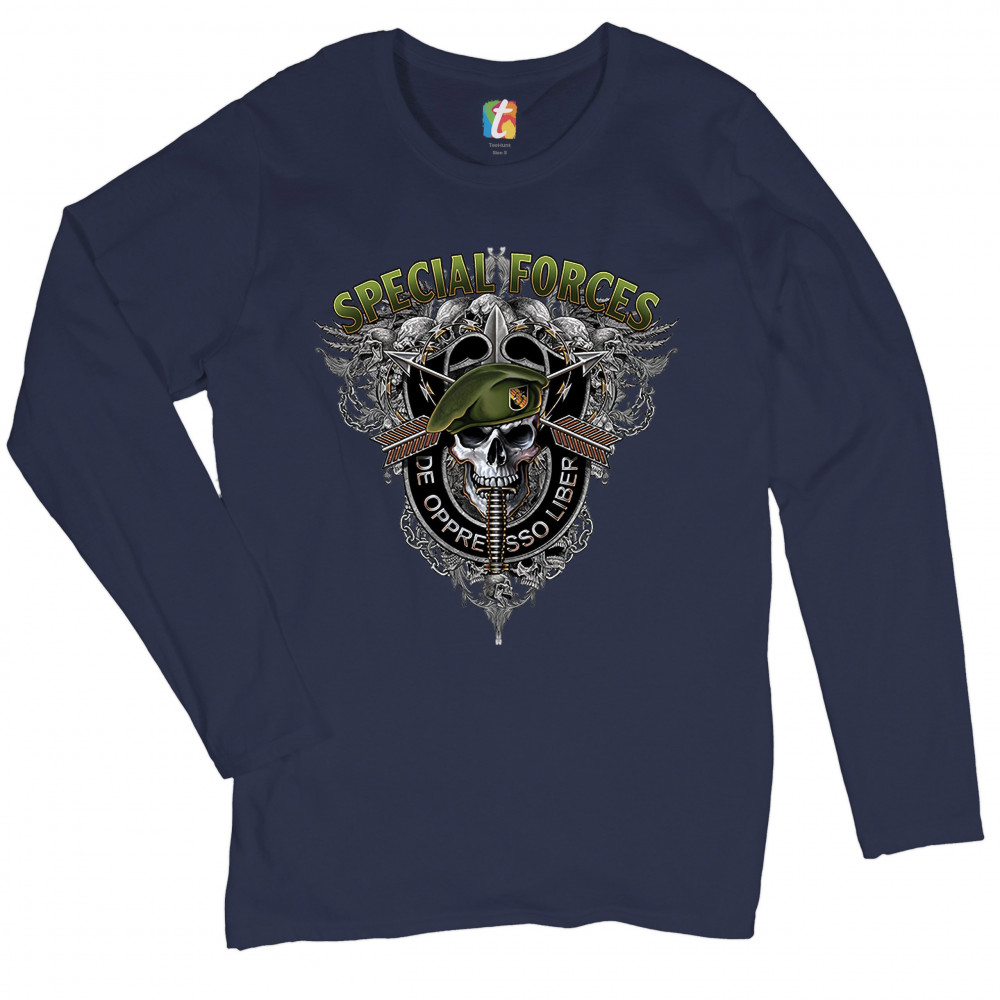 SPECIAL FORCES DE OPPRESSO LIBER women's long sleeve t-shirt green berets army navy blue