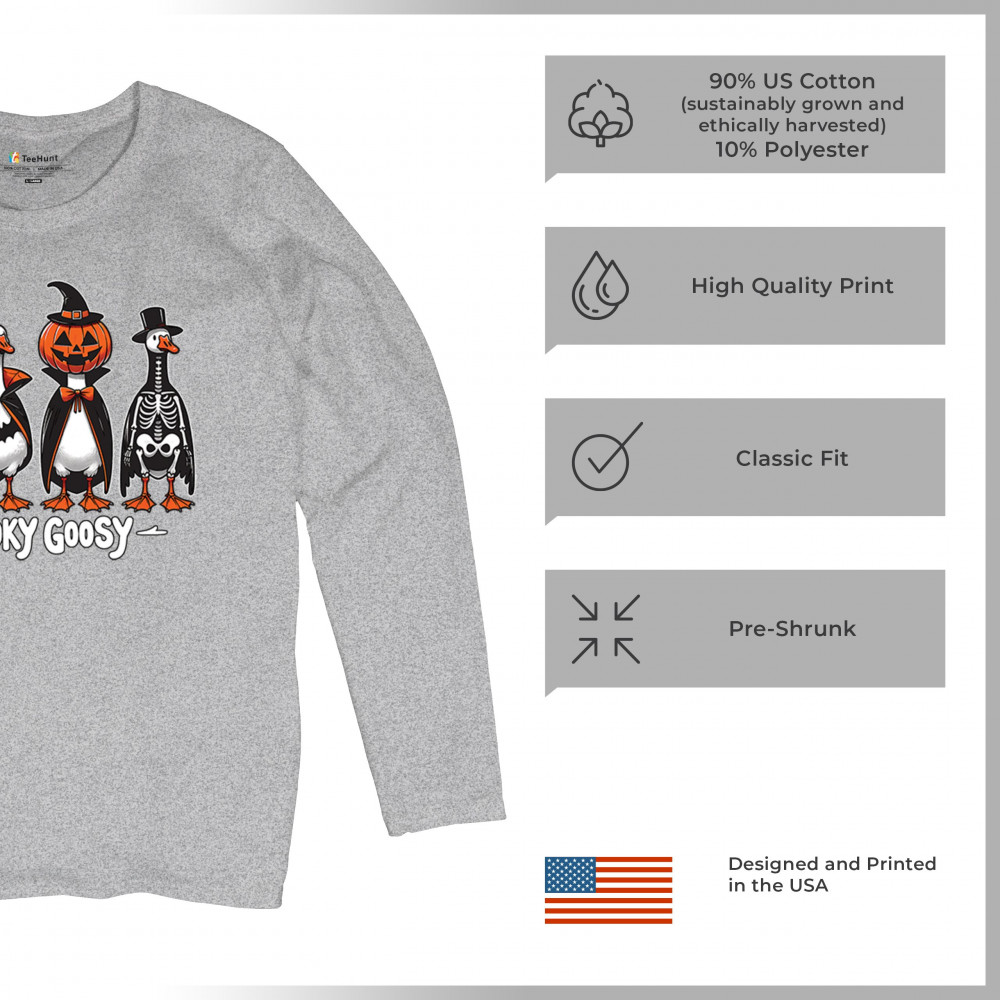 Bring the spooky fun to life with this Spooky Goosy Halloween design featuring geese in witch, skeleton, vampire, and pumpkin costumes. Perfect for haunted house nights, October 31 trick-or-treat events, or monster mash gatherings. A funny and festive choice for goose lovers and Halloween enthusiasts who enjoy creepy costume vibes.