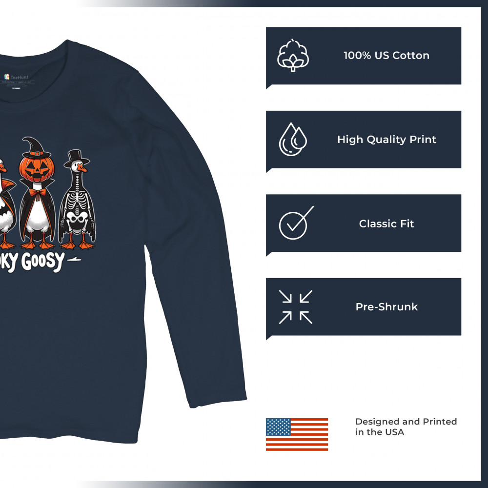 Bring the spooky fun to life with this Spooky Goosy Halloween design featuring geese in witch, skeleton, vampire, and pumpkin costumes. Perfect for haunted house nights, October 31 trick-or-treat events, or monster mash gatherings. A funny and festive choice for goose lovers and Halloween enthusiasts who enjoy creepy costume vibes.