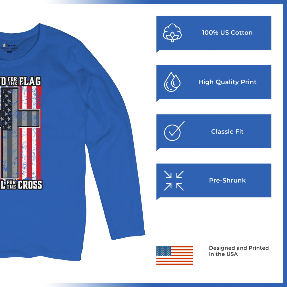 Embrace your identity as an American patriot and devout Christian with our Stand for the Flag Kneel for the Cross tee, a powerful testament to your values. Crafted with the American flag and the sacred cross, this design serves as both Trump merchandise and a symbol of unwavering faith. Whether you're a veteran, active military member, or simply a defender of liberty, this shirt proudly upholds the principles of the Second Amendment while honoring the legacy of Jesus Christ.