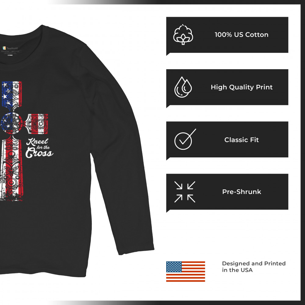 Unite under the banner of freedom and faith with our Stand for the Flag Kneel for the Cross design, a testament to the enduring values that define America. This Trump shirt combines reverence for the American flag with reverence for Jesus Christ, symbolized by the powerful Punisher logo. As a Christian patriot and supporter of our military, proudly uphold the principles of the 2nd Amendment. Let this shirt be a reminder of the strength found in both flag and cross.