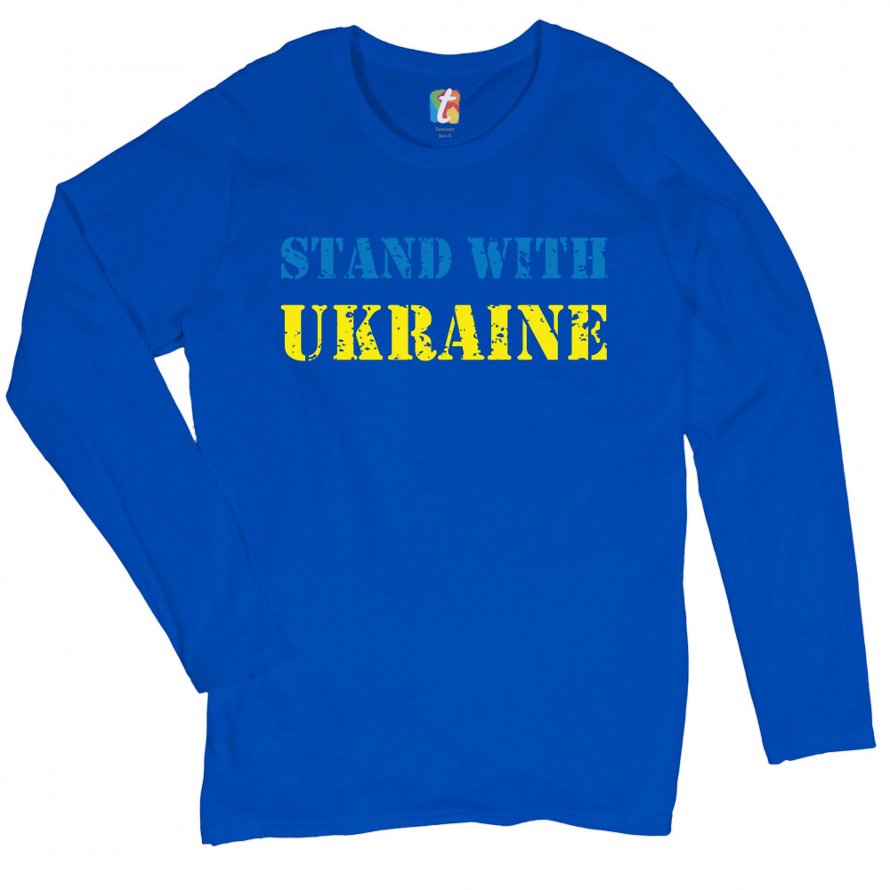 STAND WITH UKRAINE women's long sleeve t-shirt stop war support ukrainians royal blue