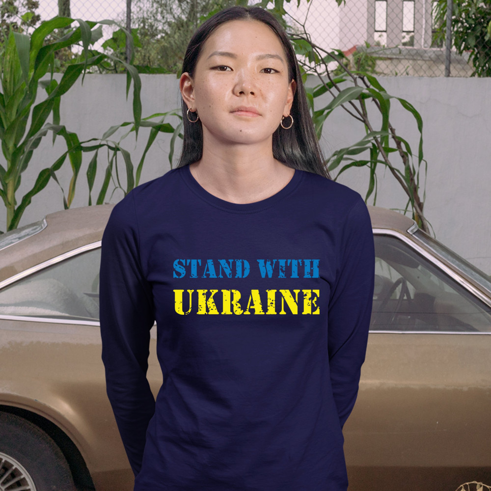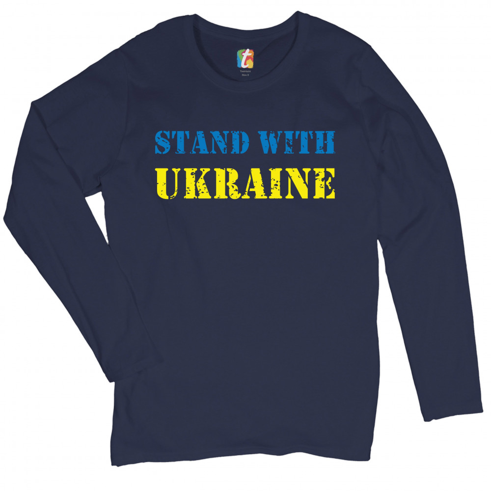 STAND WITH UKRAINE women's long sleeve t-shirt stop war support ukrainians navy blue