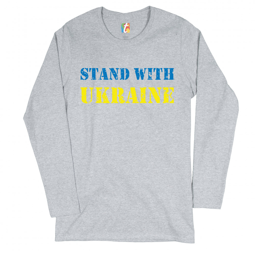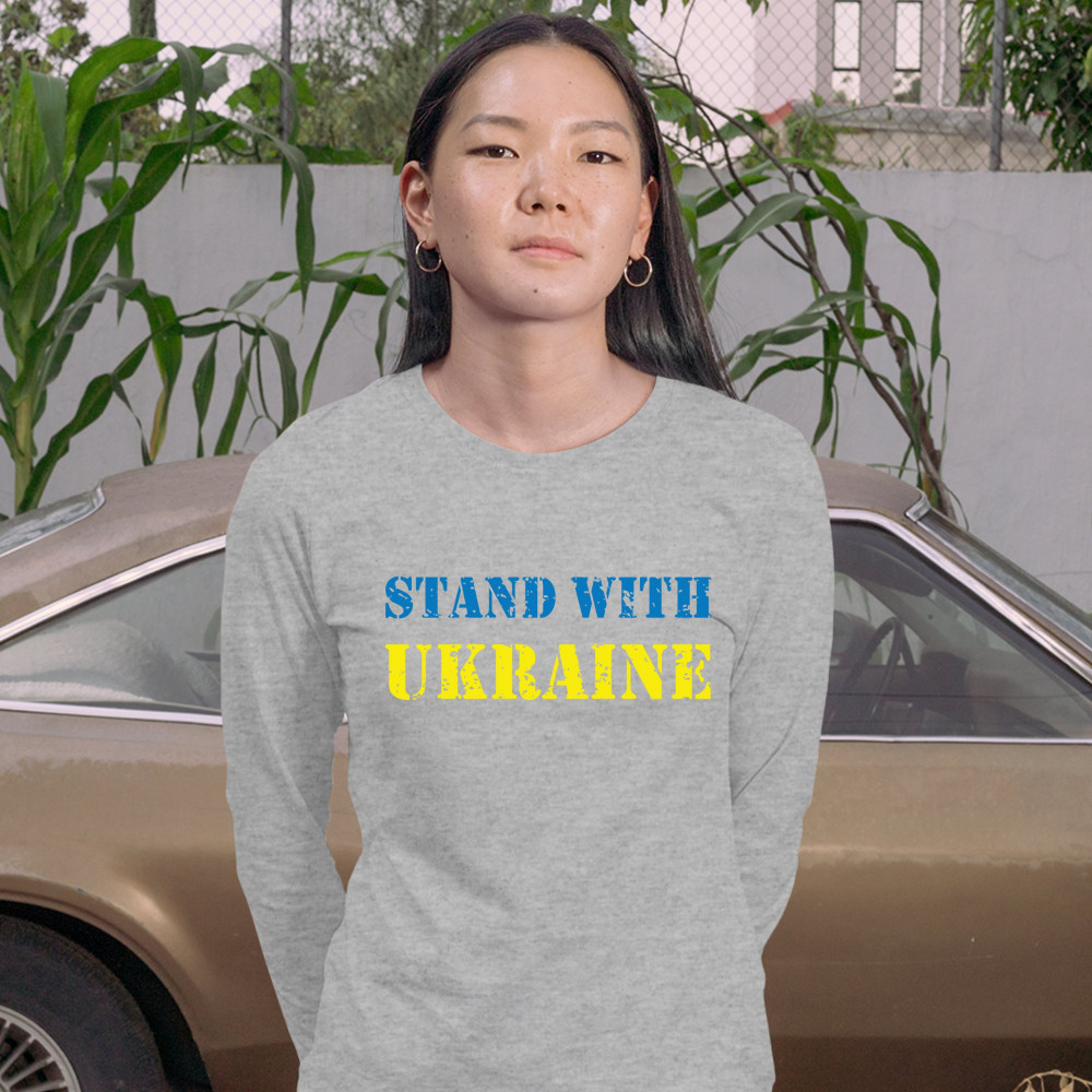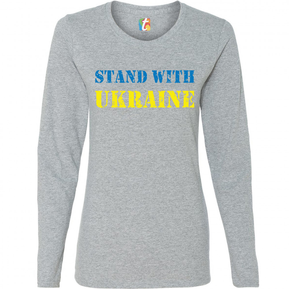 STAND WITH UKRAINE women's long sleeve t-shirt stop war support ukrainians gray