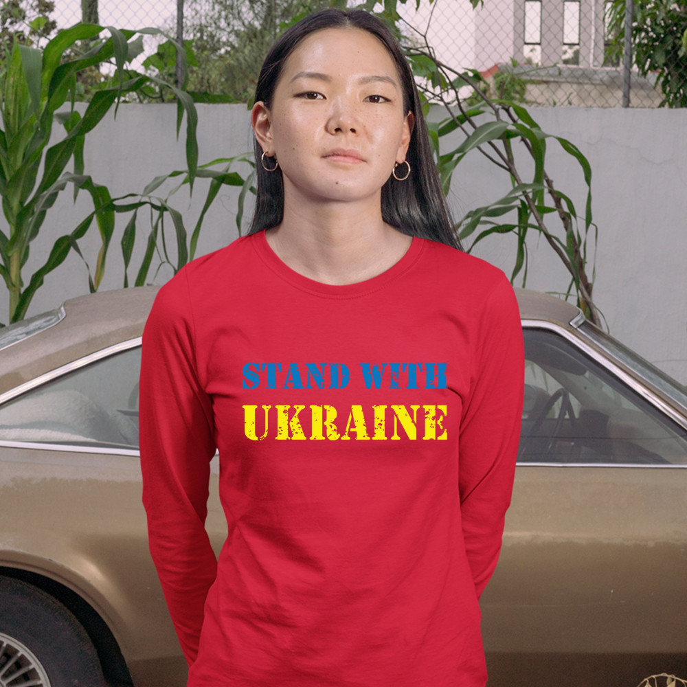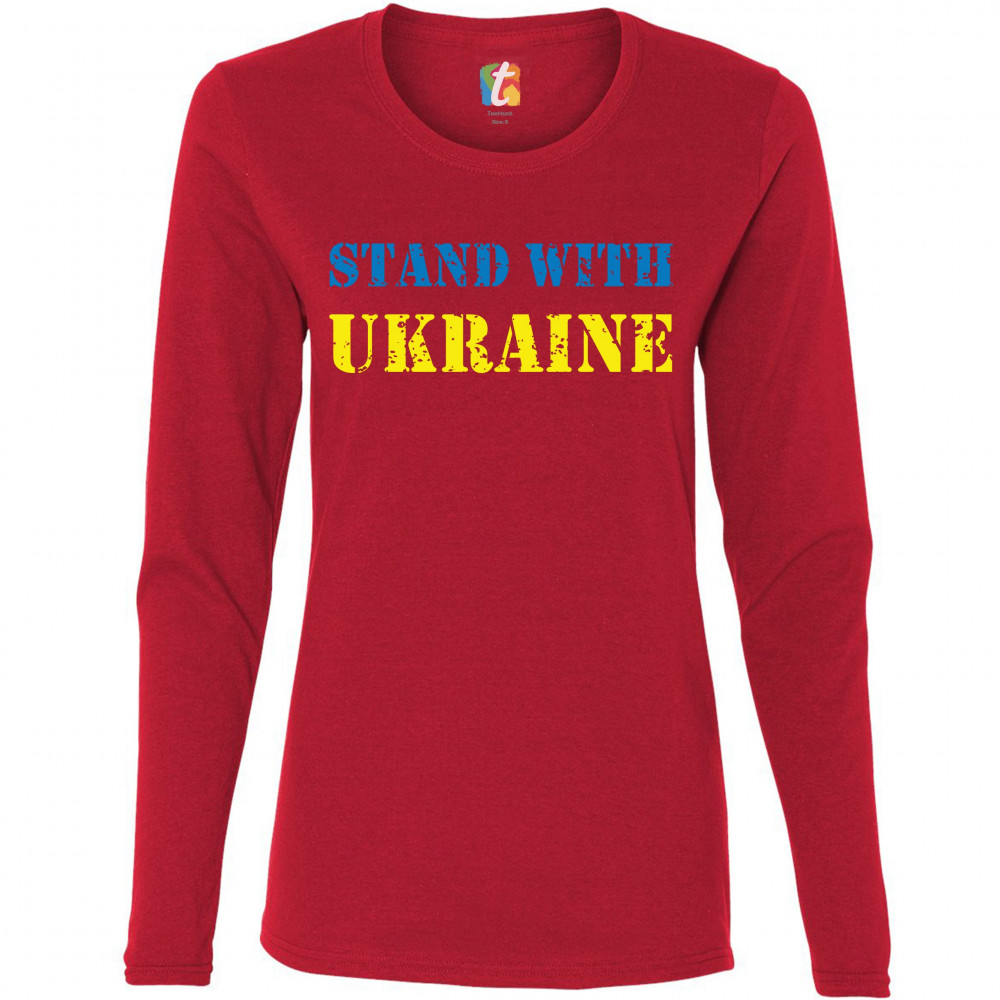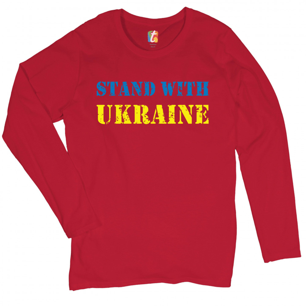 STAND WITH UKRAINE women's long sleeve t-shirt stop war support ukrainians red