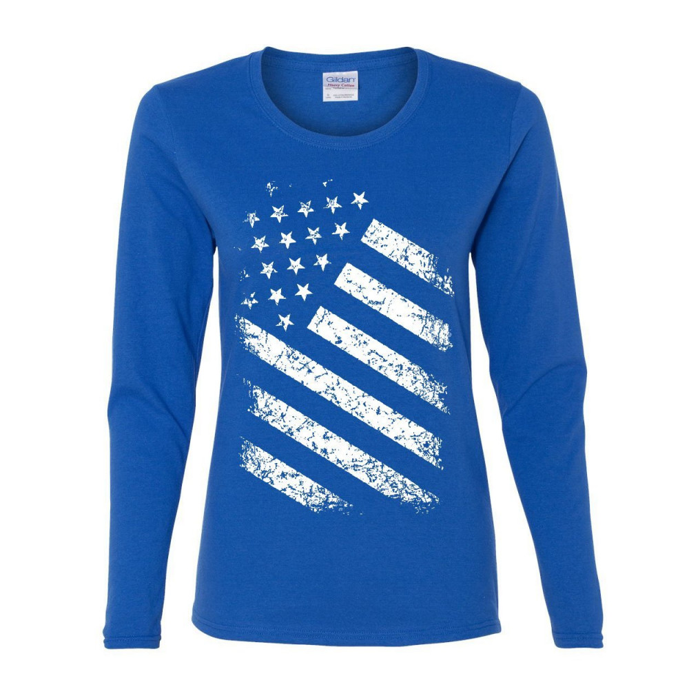 STARS AND STRIPES women's long sleeve tee 4th of july united states flag pride royal blue