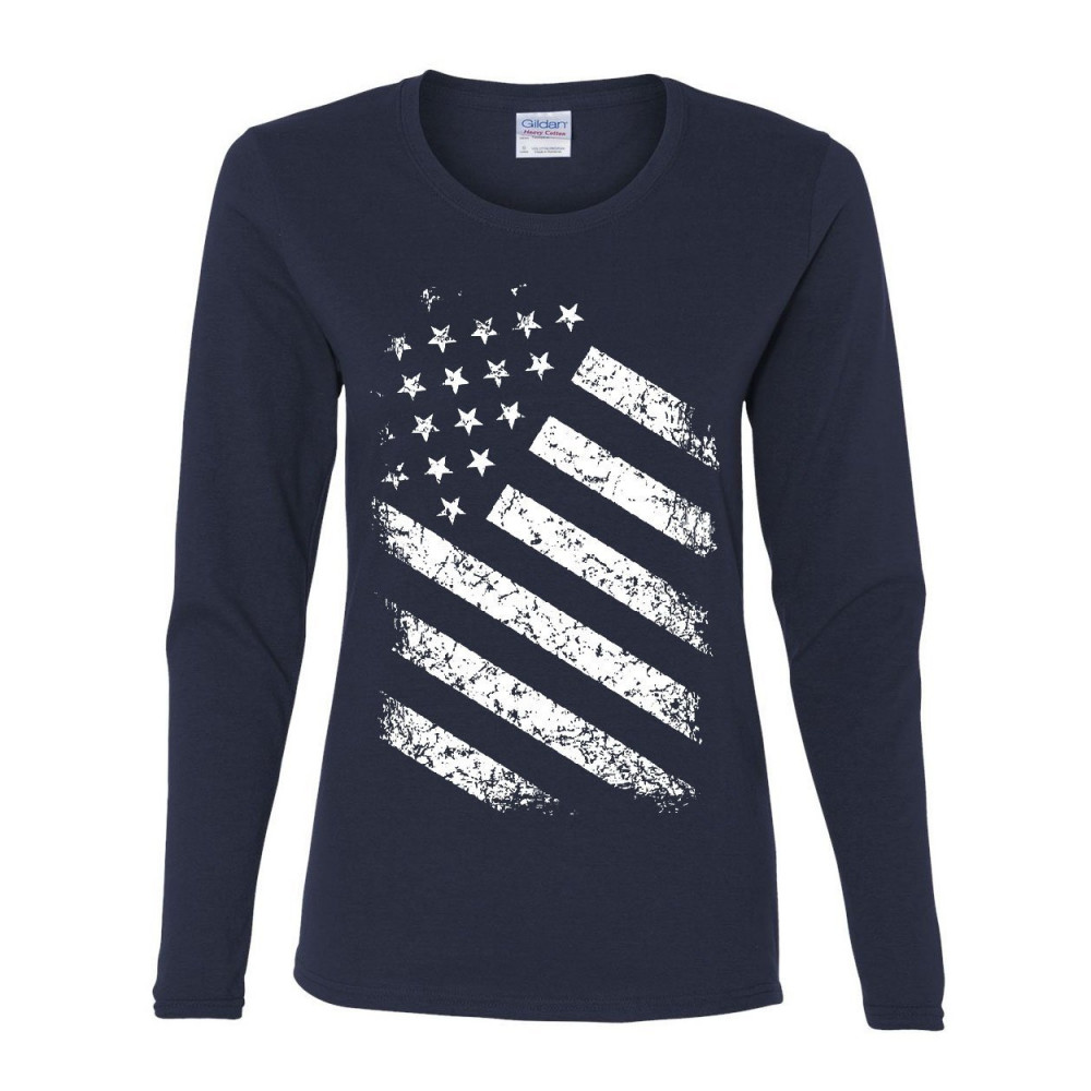 STARS AND STRIPES women's long sleeve tee 4th of july united states flag pride navy blue