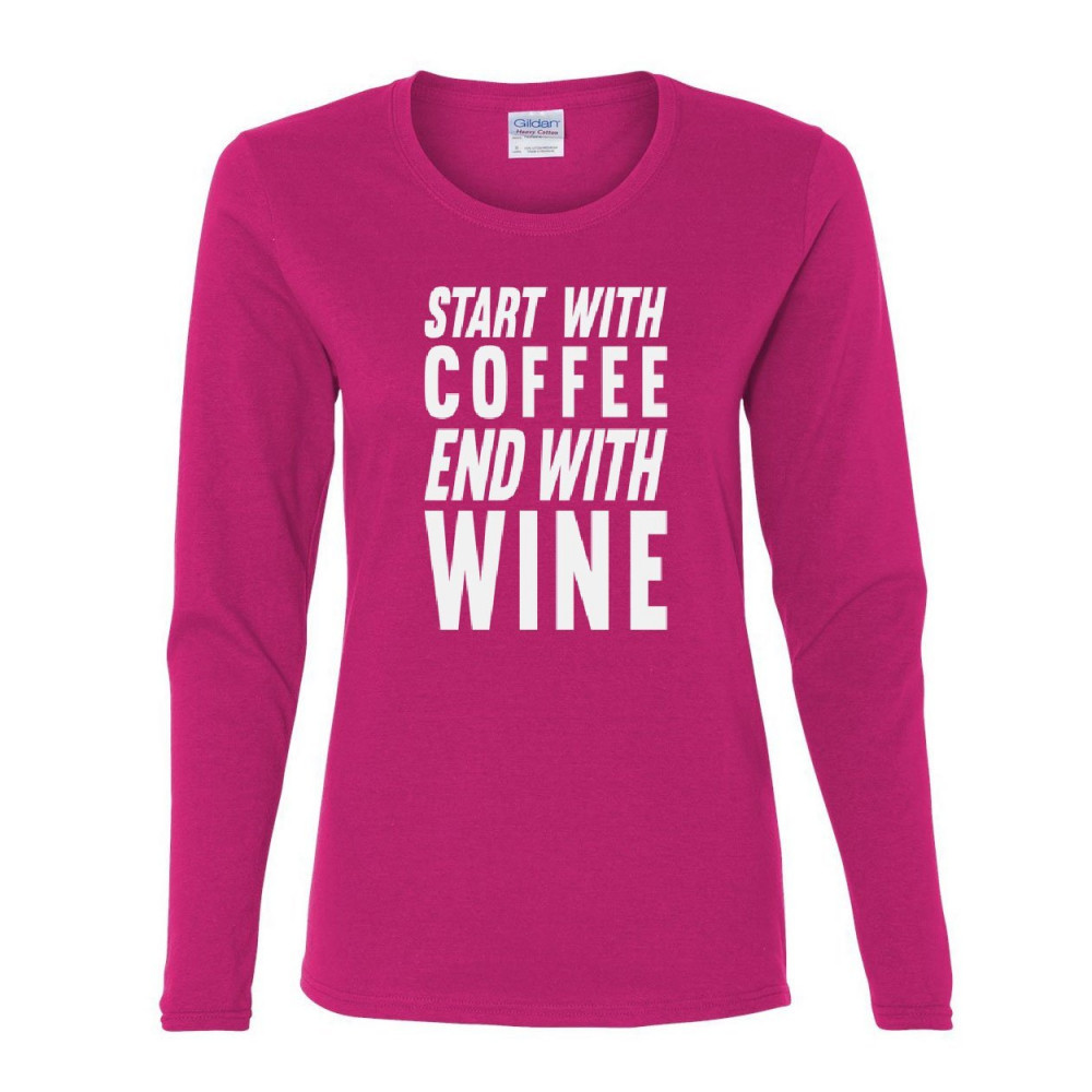 START WITH COFFEE END WITH WINE women's long sleeve tee drinking daily routine pink