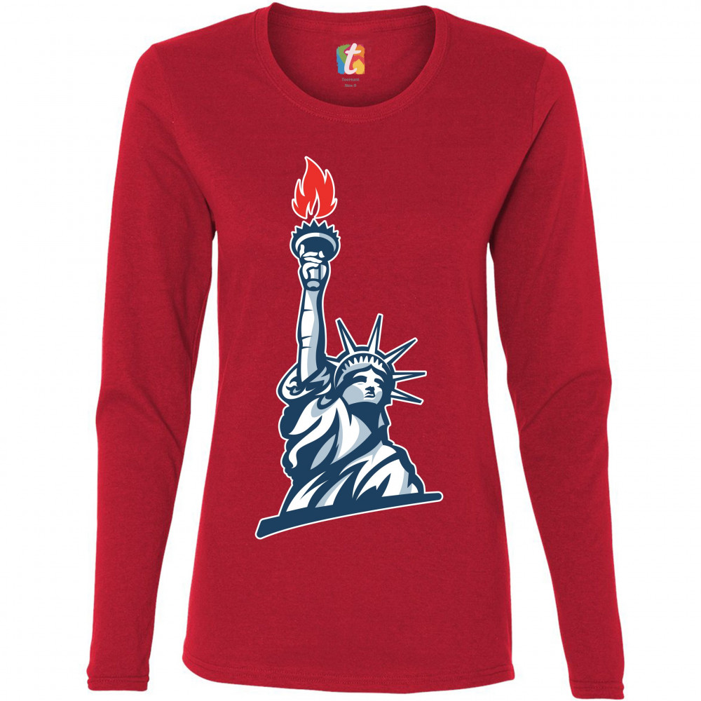 STATUE OF LIBERTY women's long sleeve t-shirt manhattan new york 4th of july red